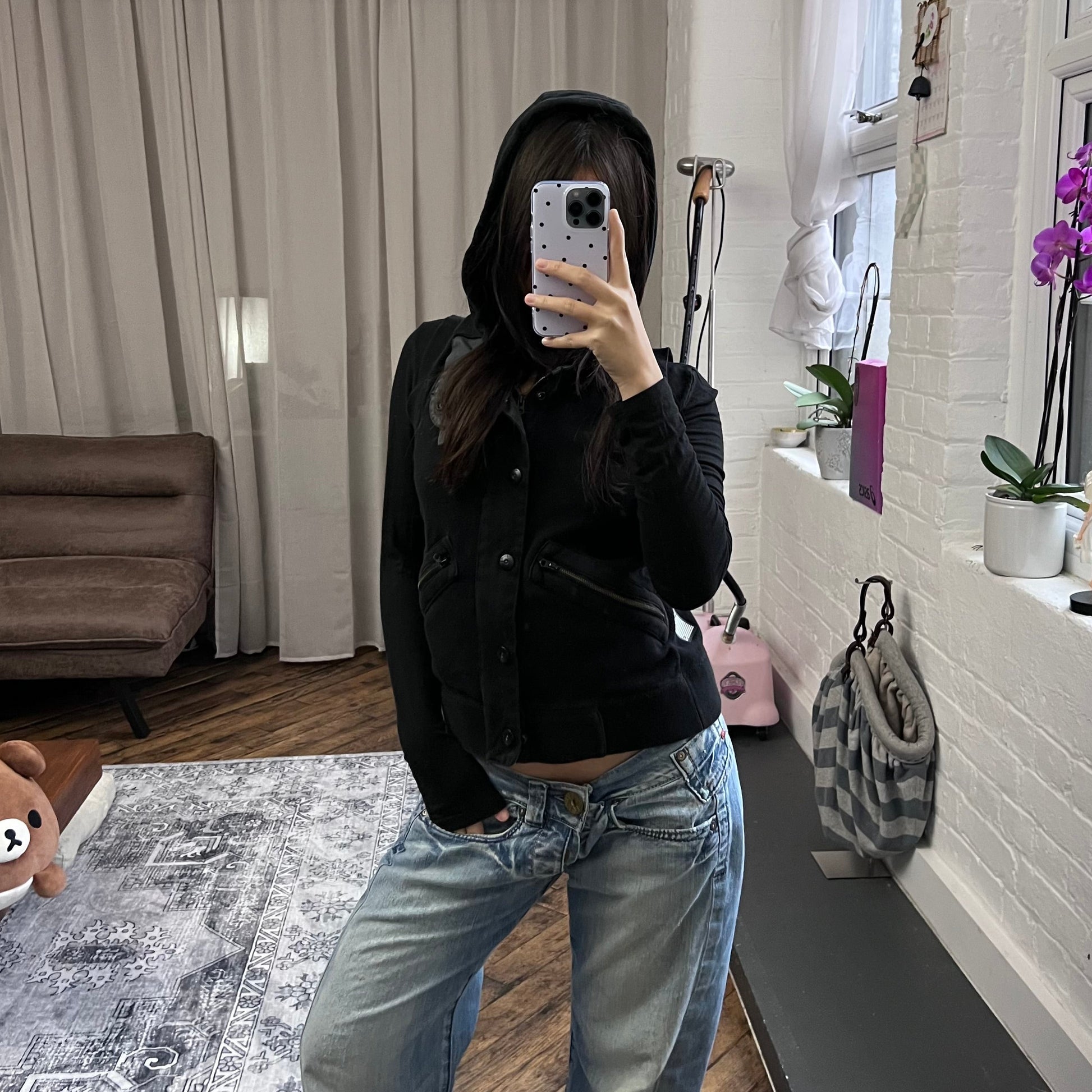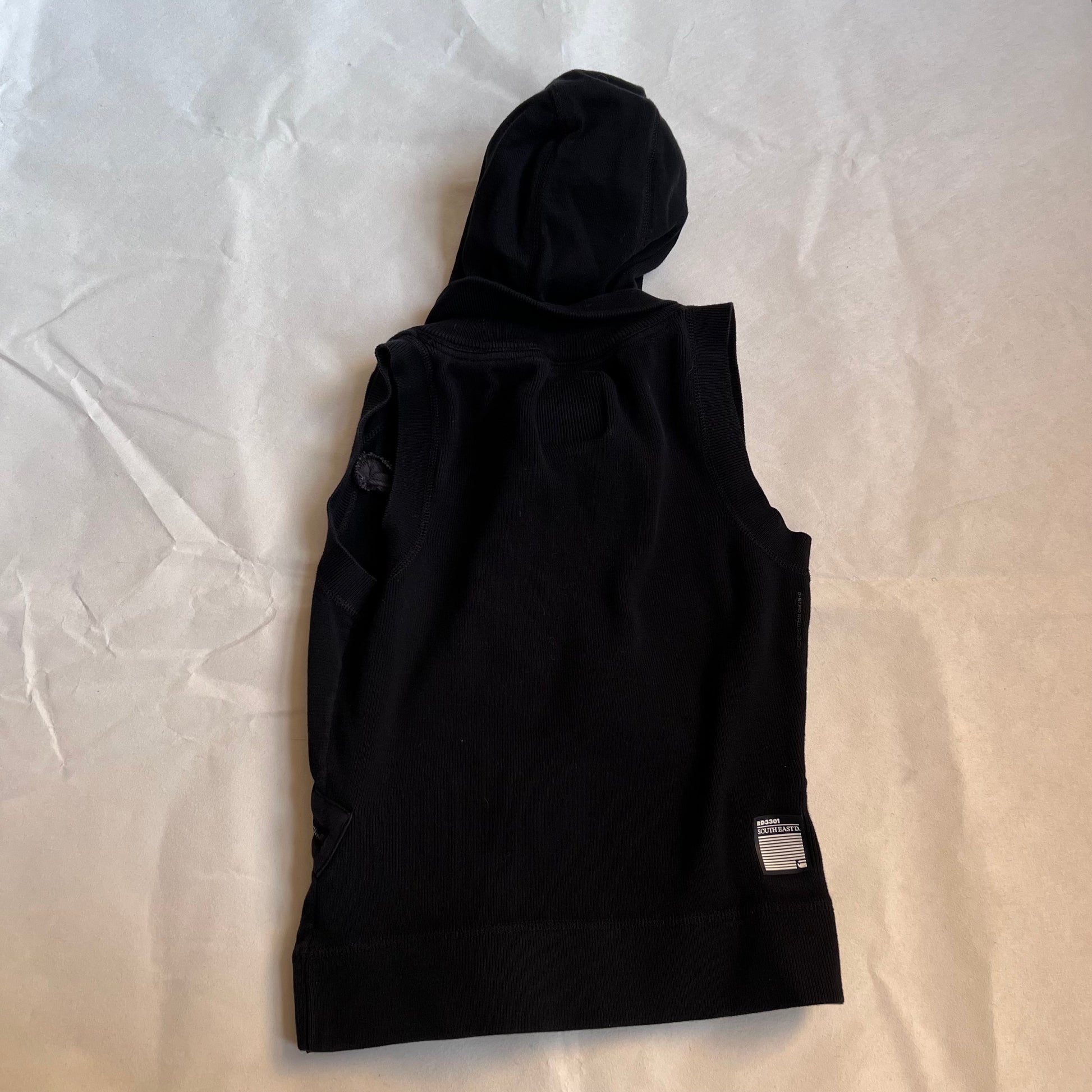 black g-star raw utility button down zip pocket hooded vest top