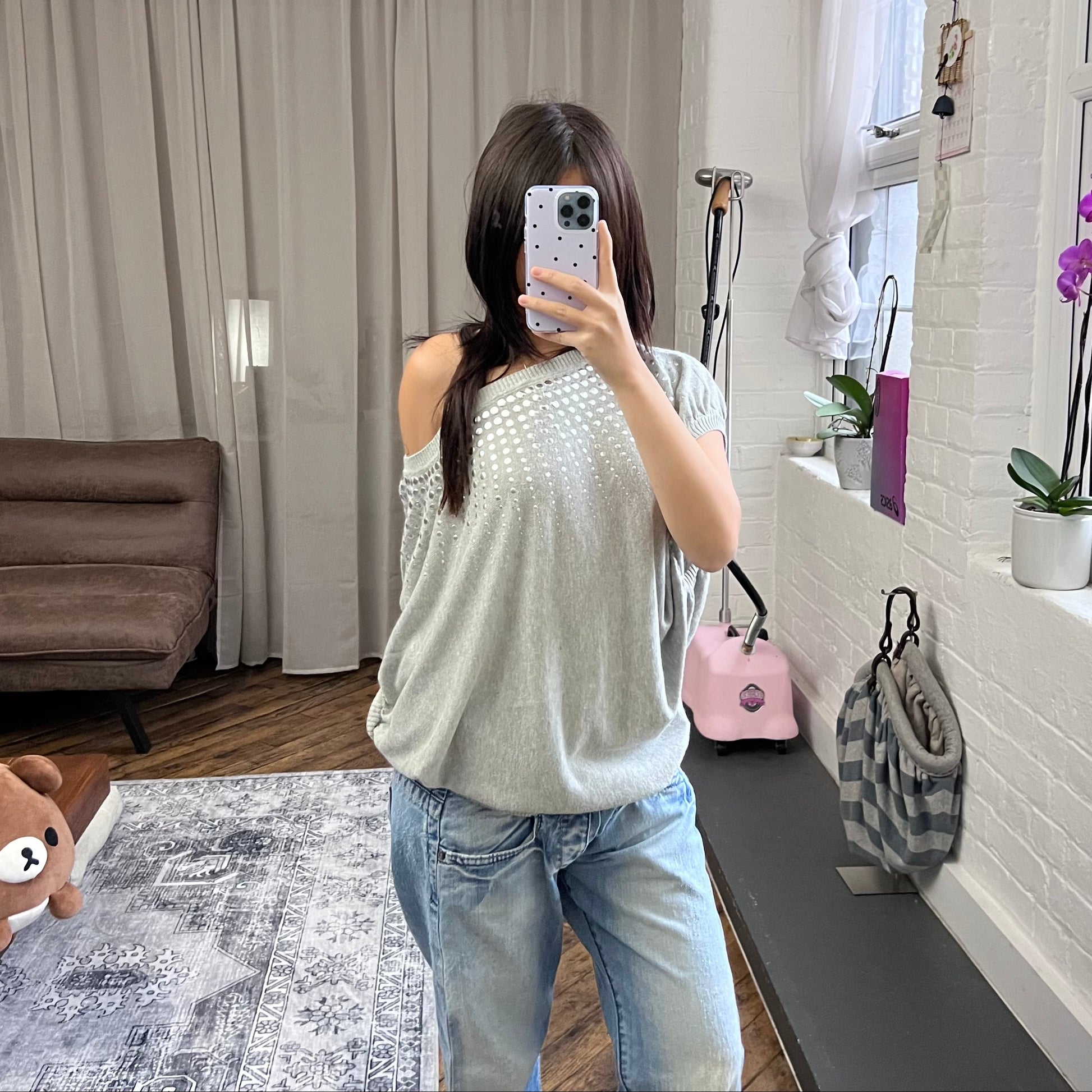 blanco grey silver studded oversized batwing jersey tunic sweater