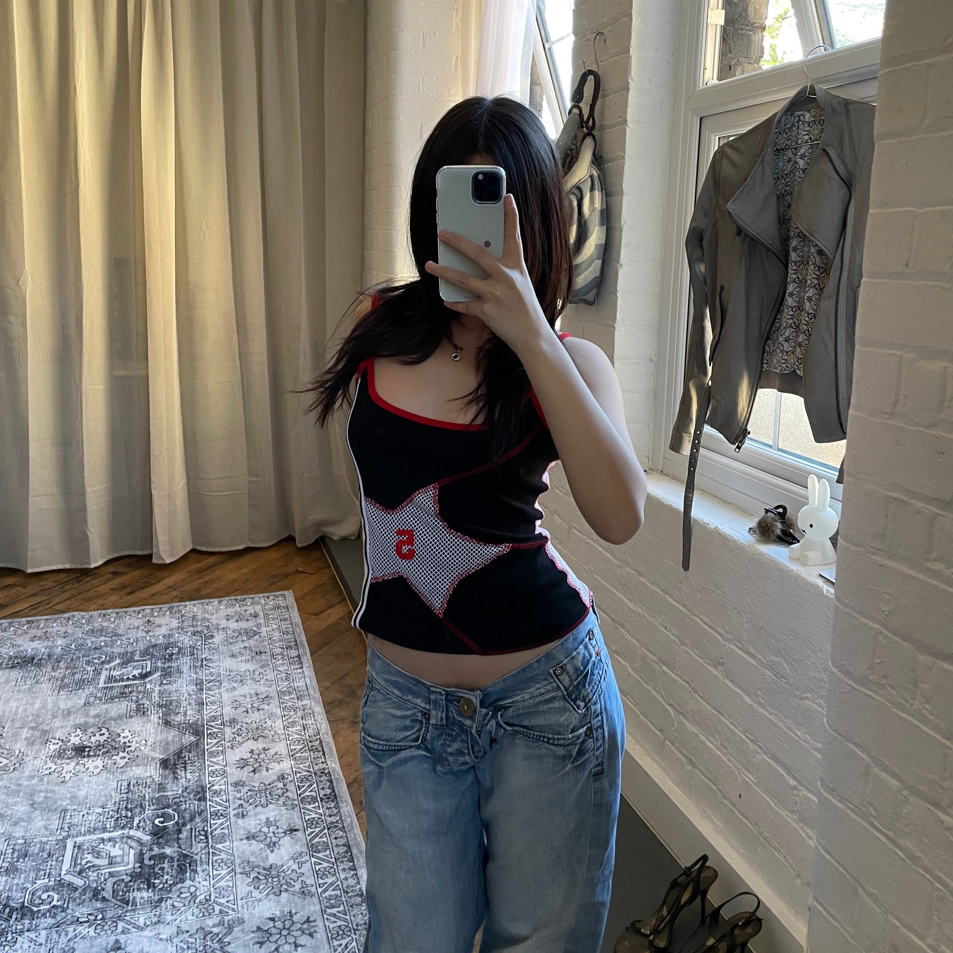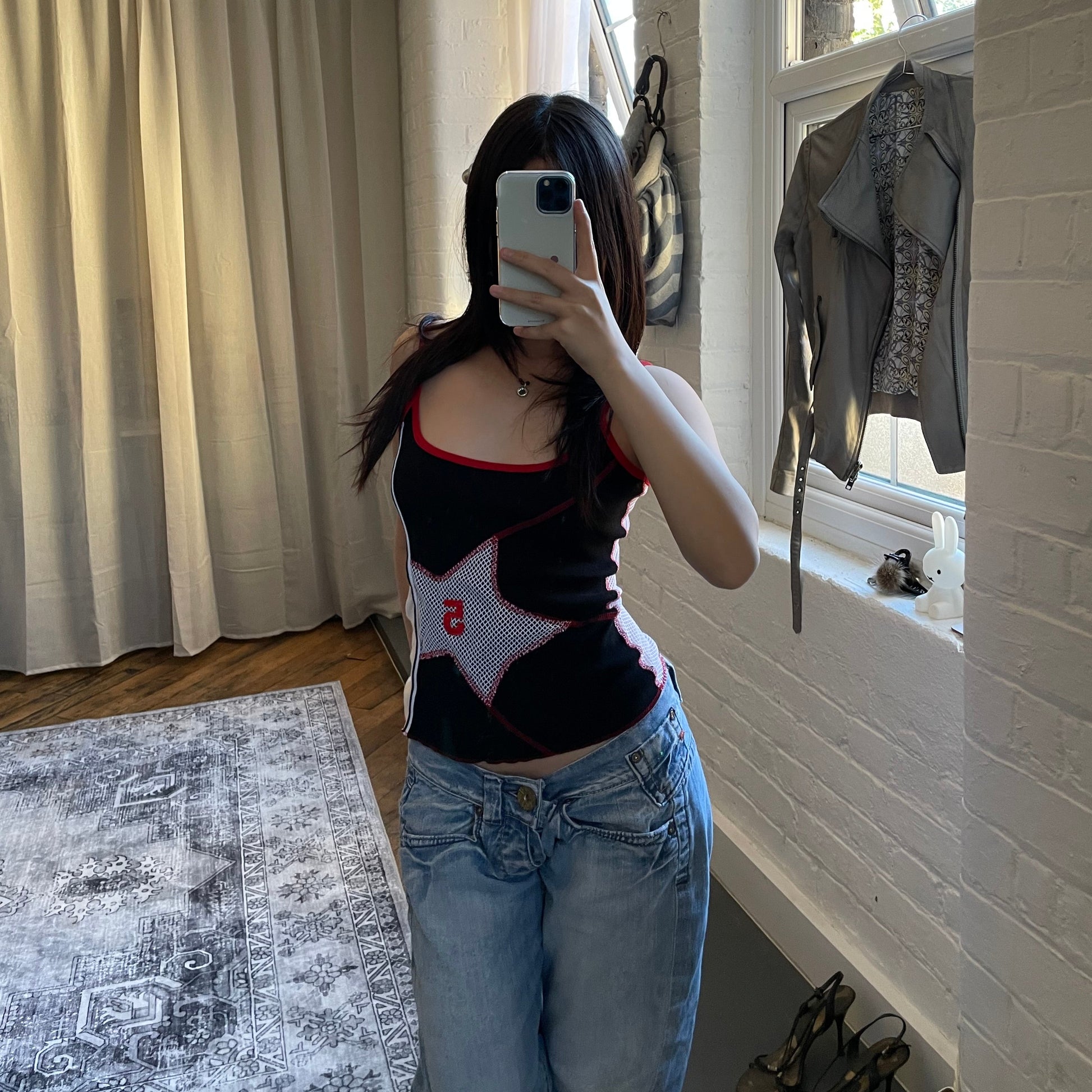 bouche a bouche sporty y2k star print black white red basketball mesh vest