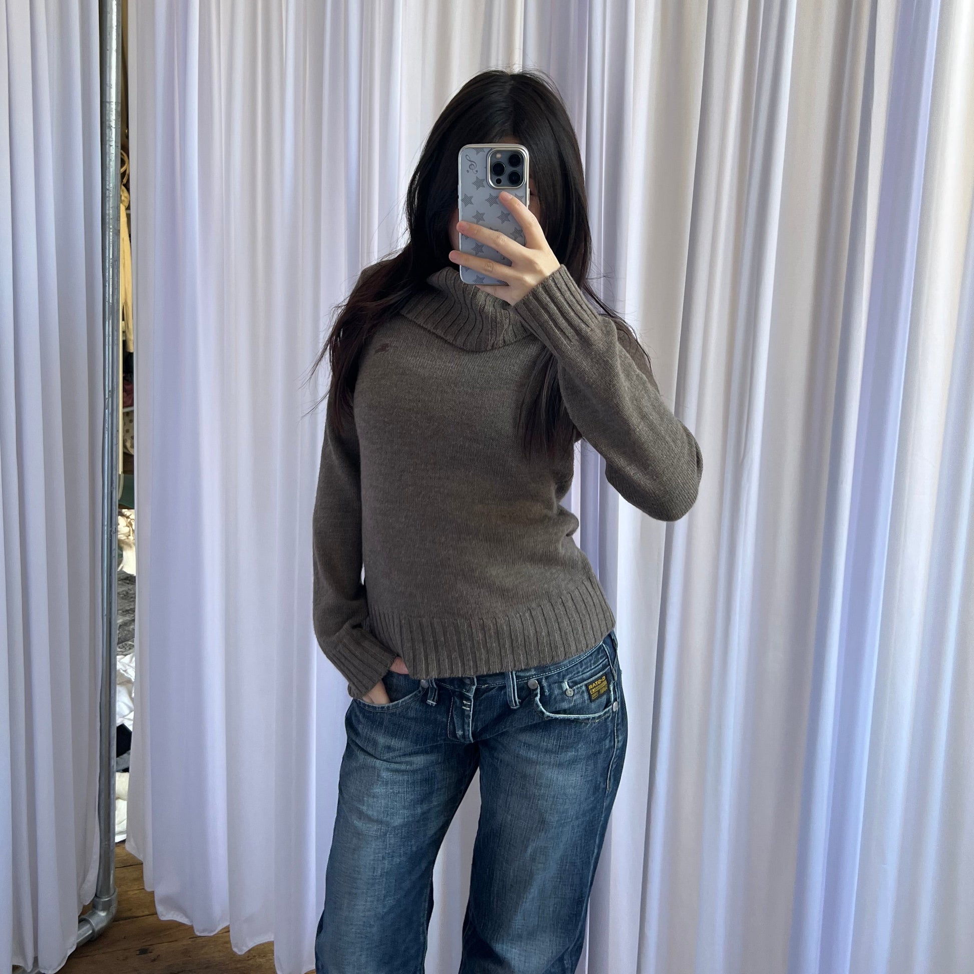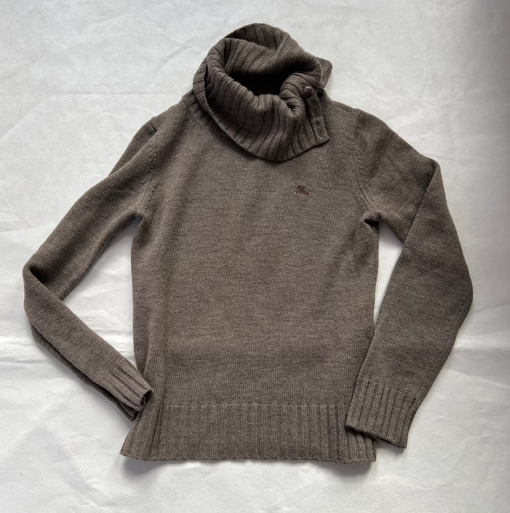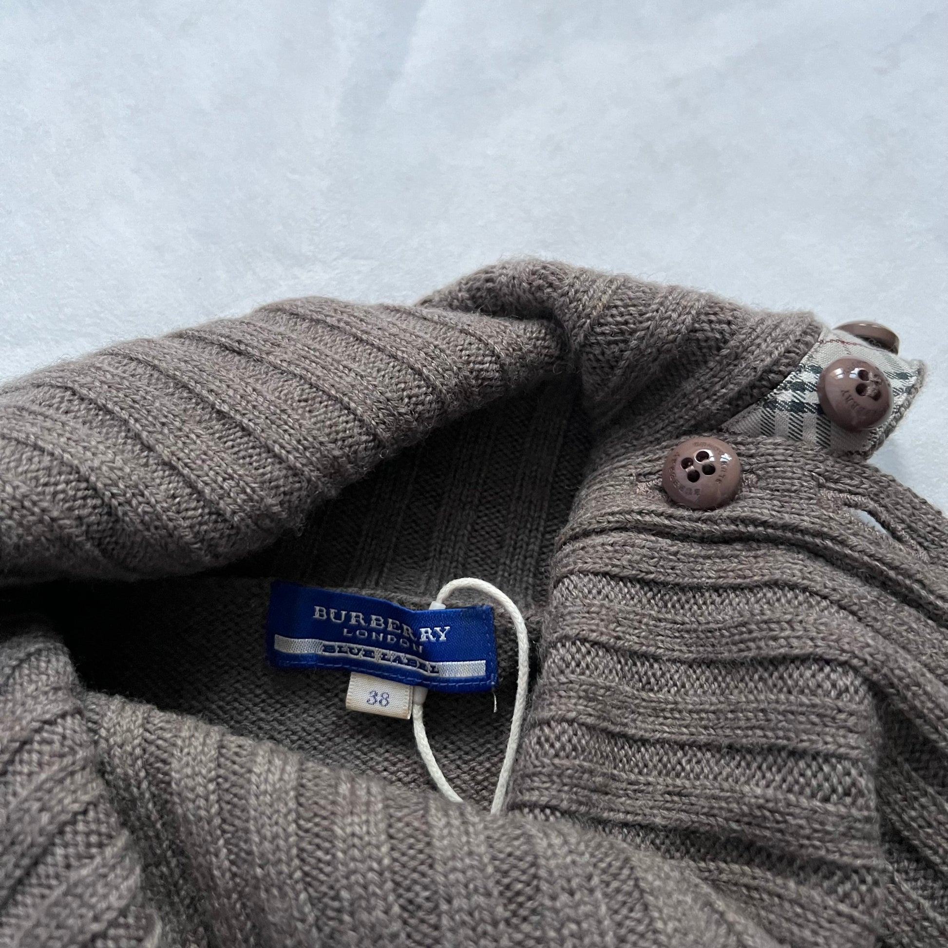 Burberry Blue Label Brown Button Accent Ribbed Turtle Neck Knit Wool Sweater