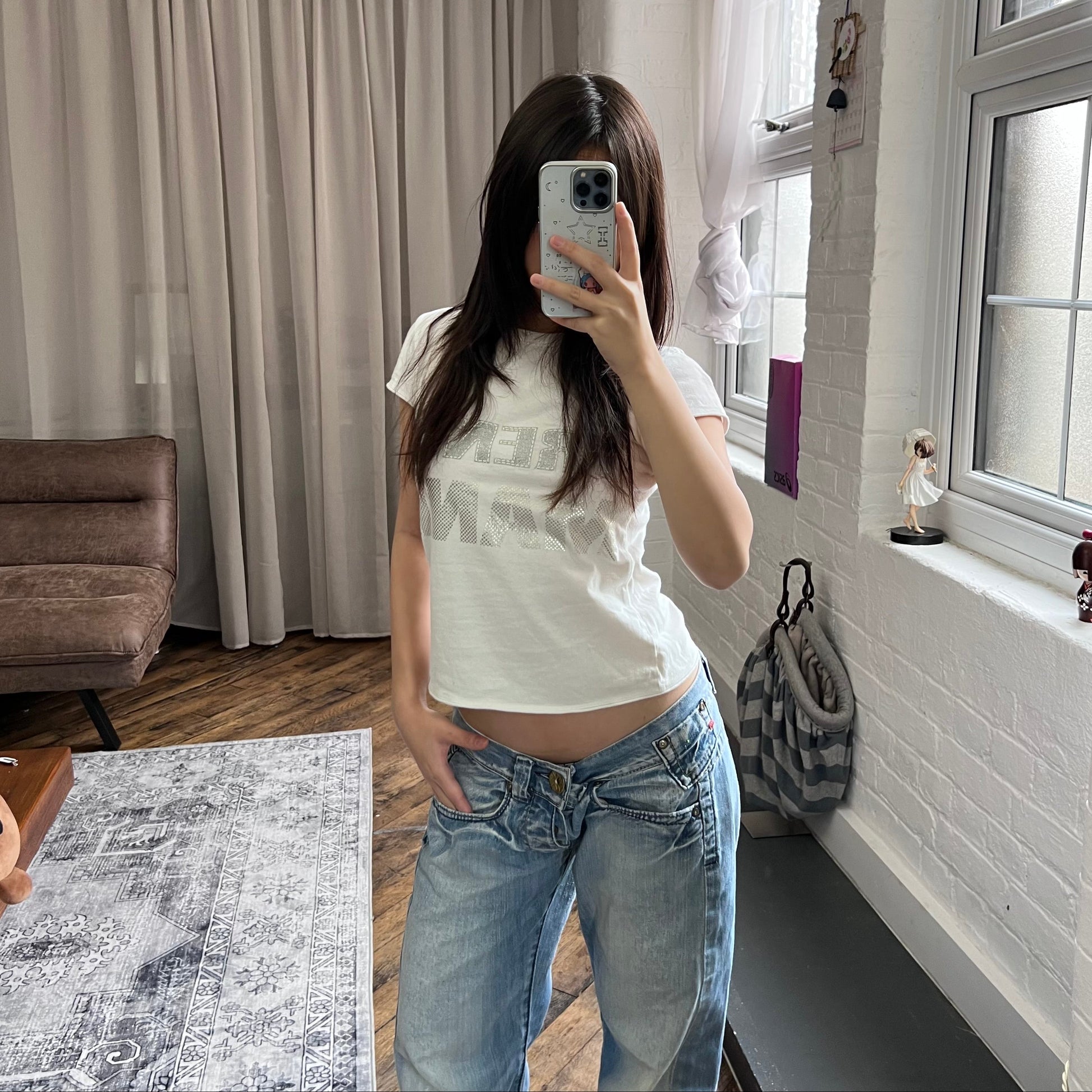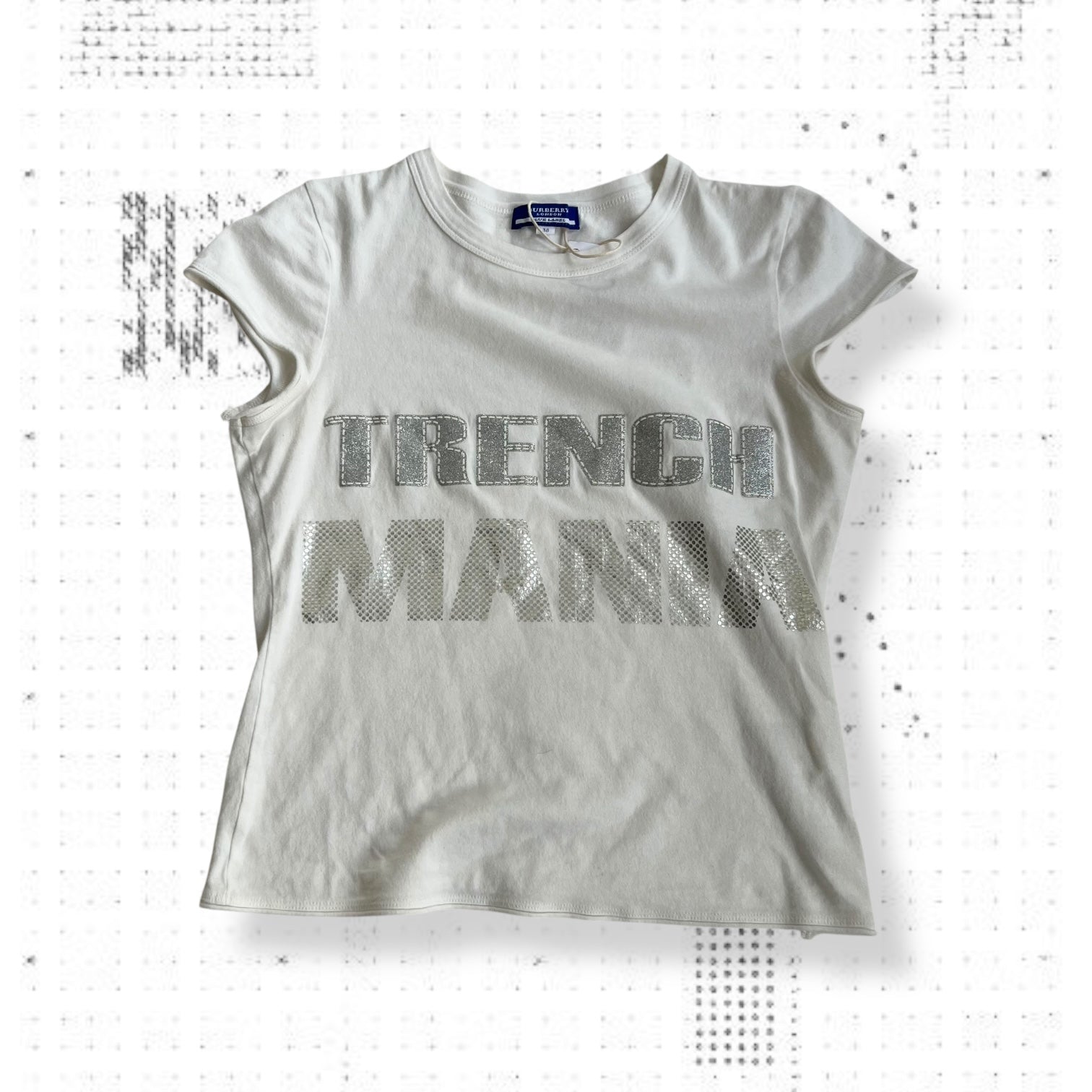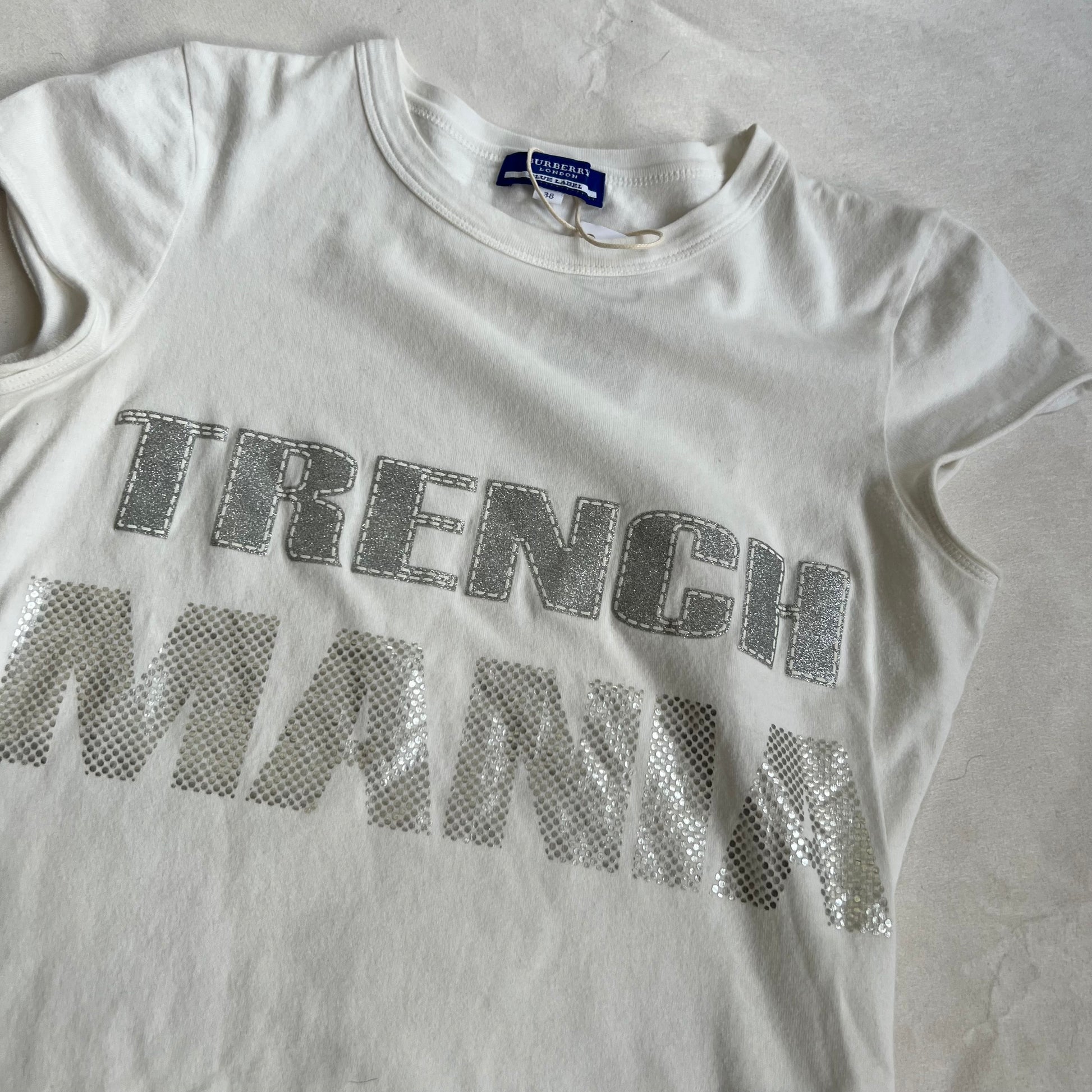 burberry blue label white cap sleeve green silver print trench mania crop top