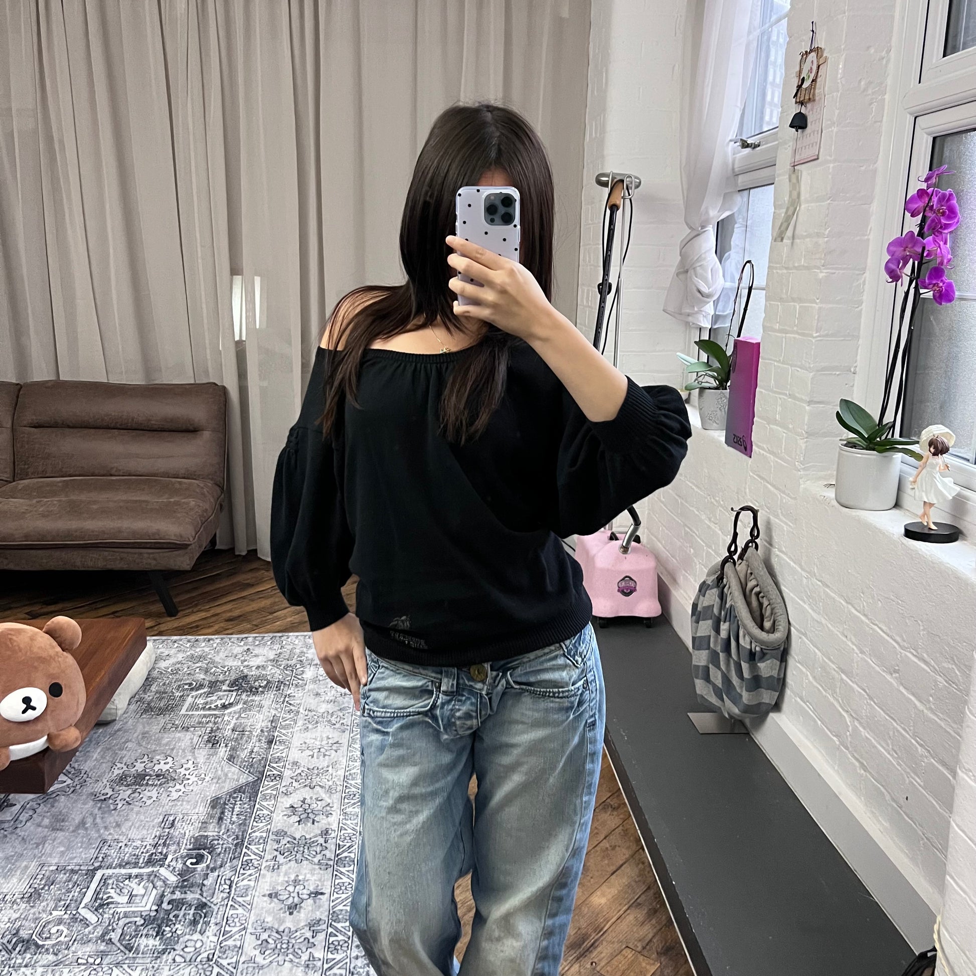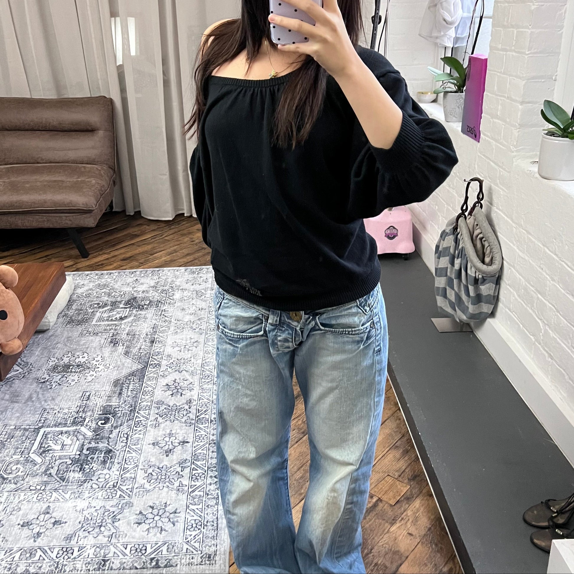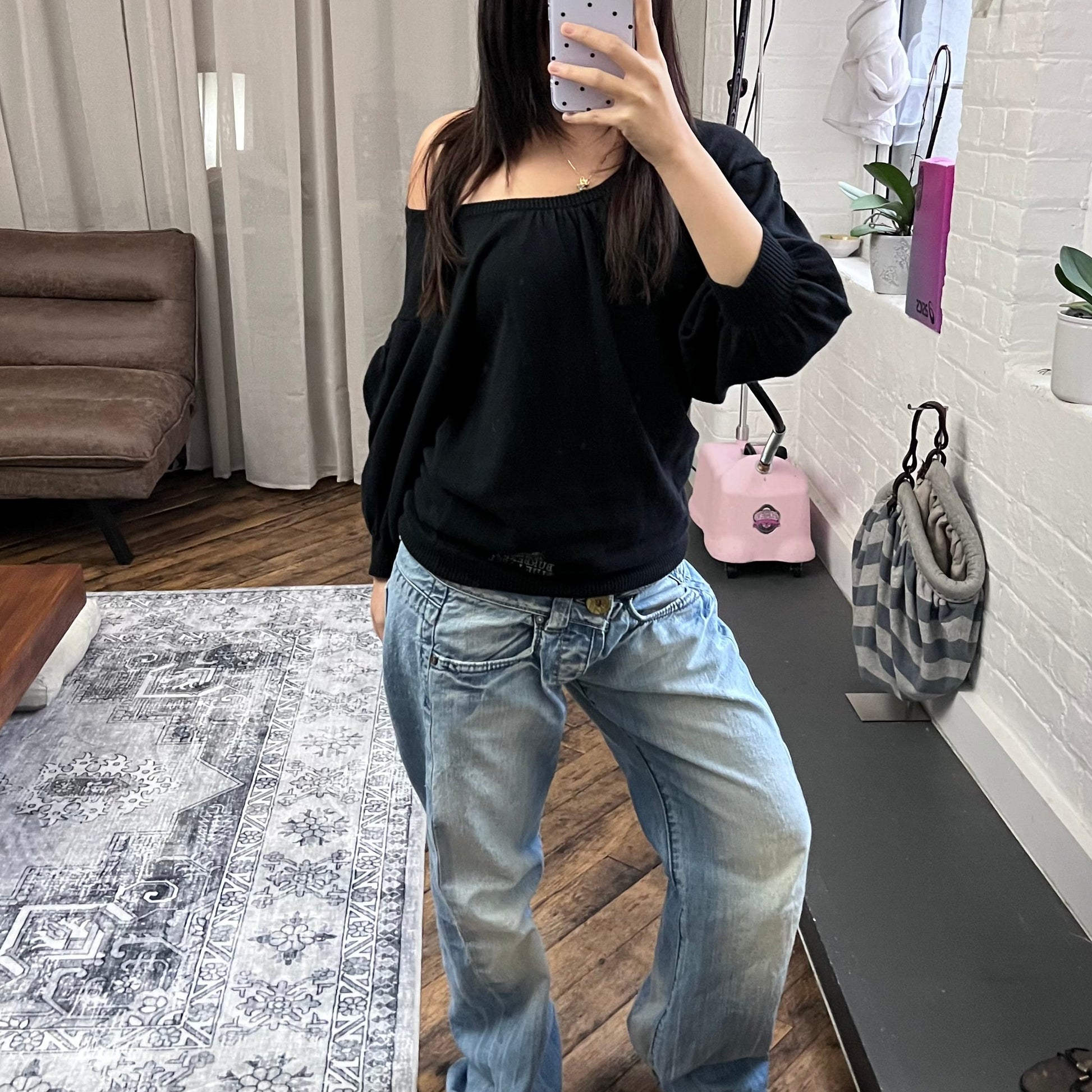 burberry blue label wide neck batwing oversized black long sleeve tunic jumper