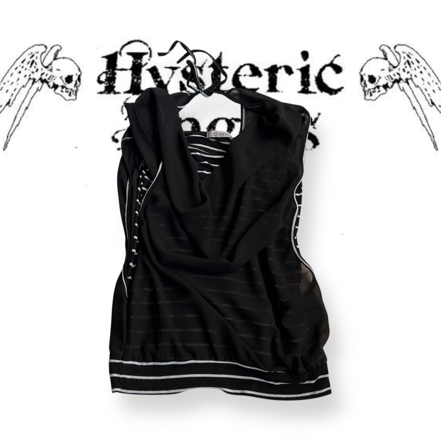 cwk black white striped draped two in one vest blouson top