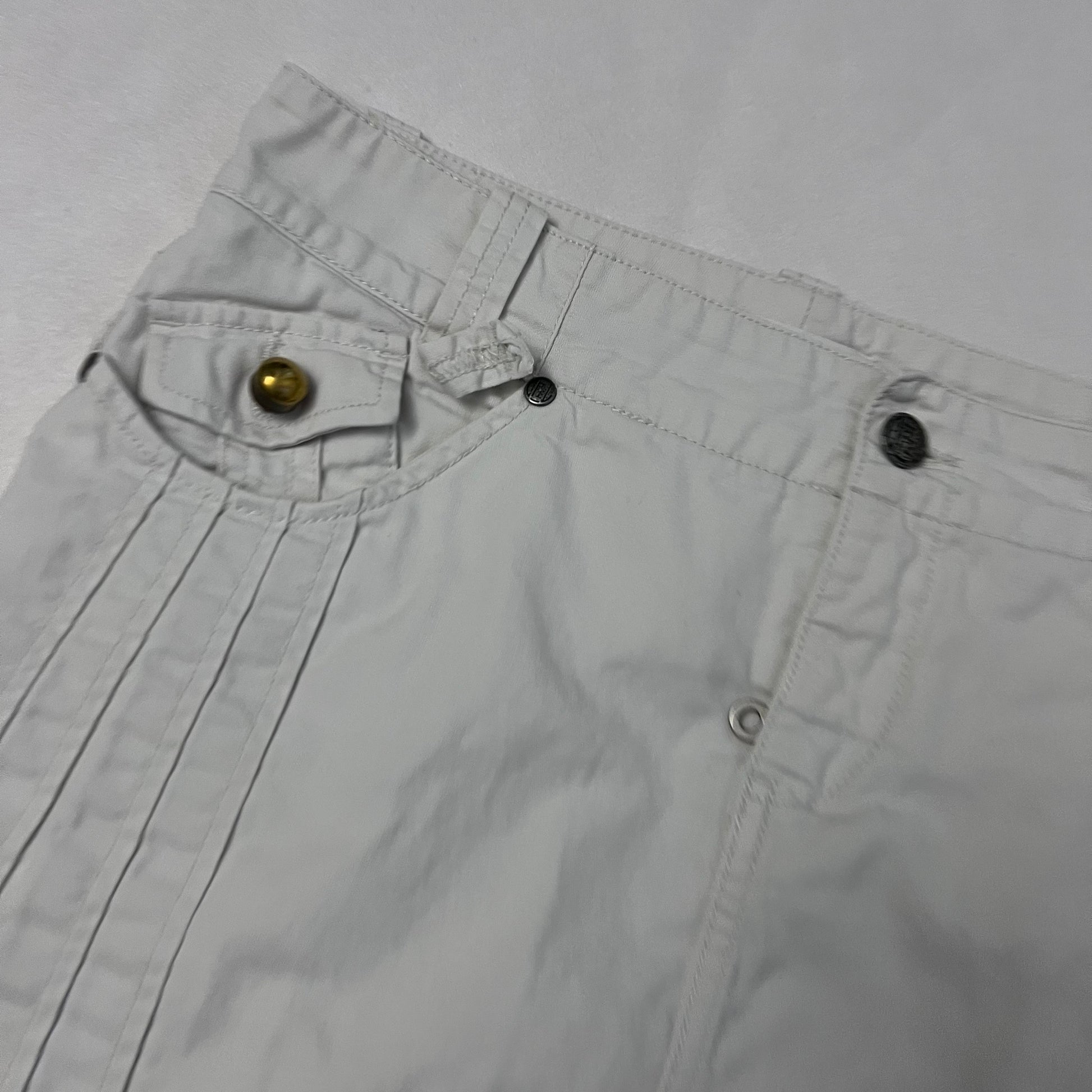 diesel stone white denim pleated knee length midi skirt