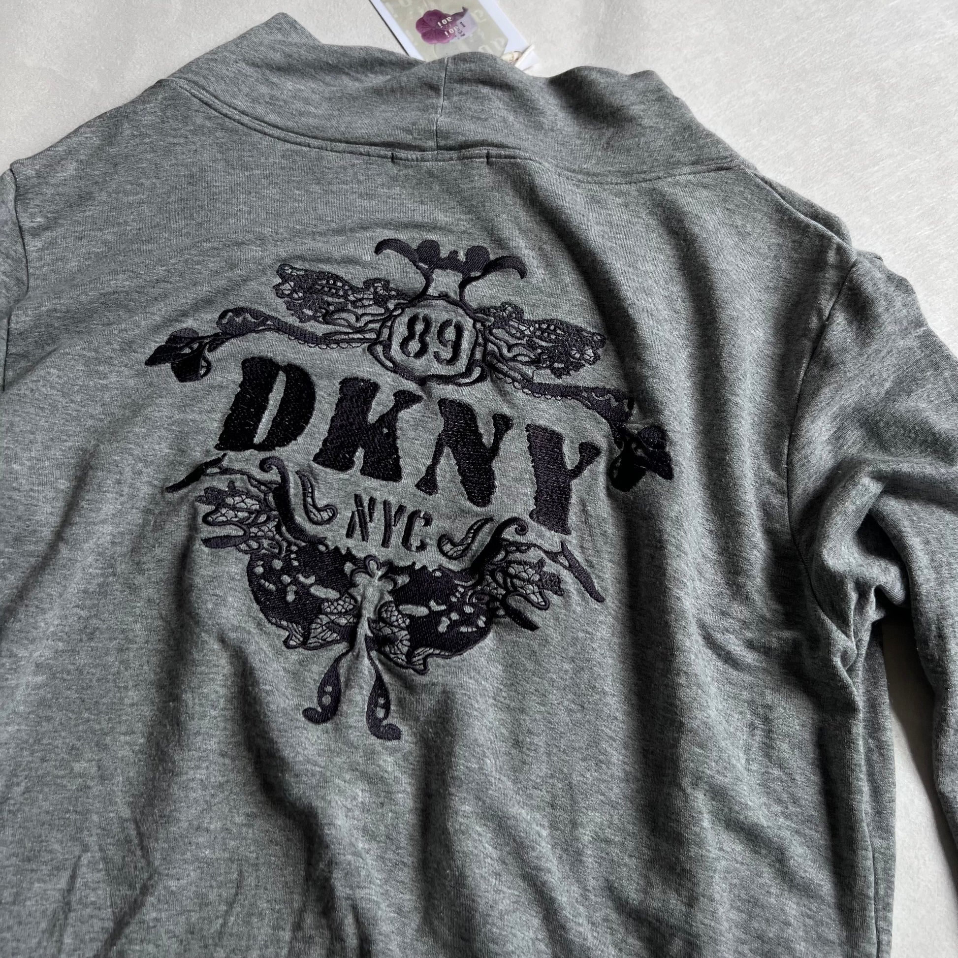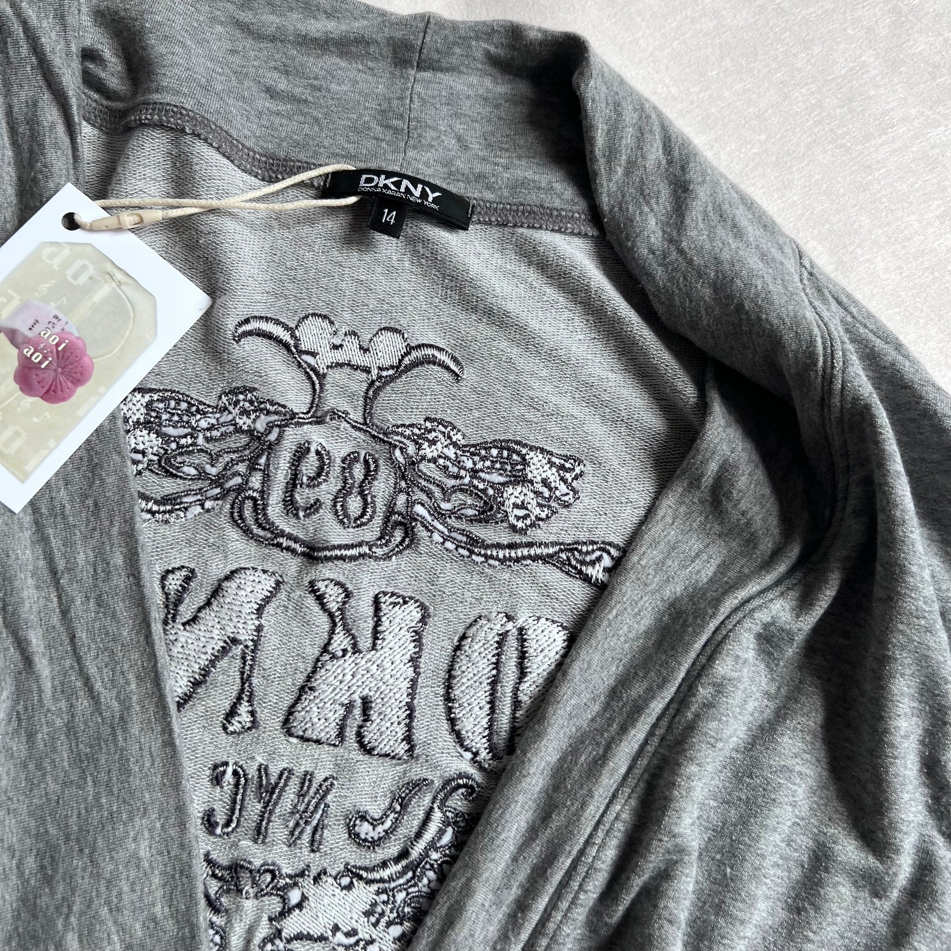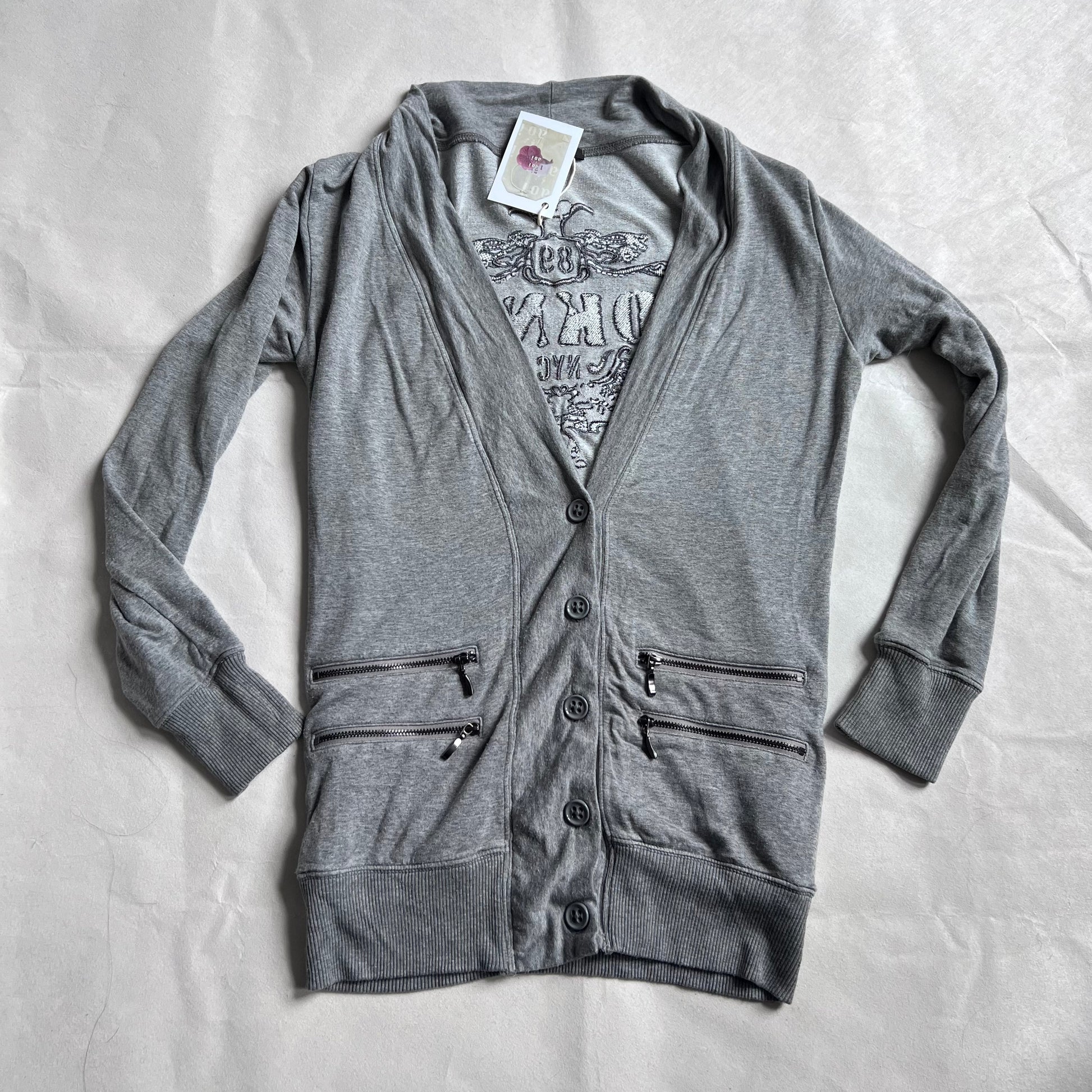 DKNY Grey Dual Zip Embroidered Wings V Neck Cardigan