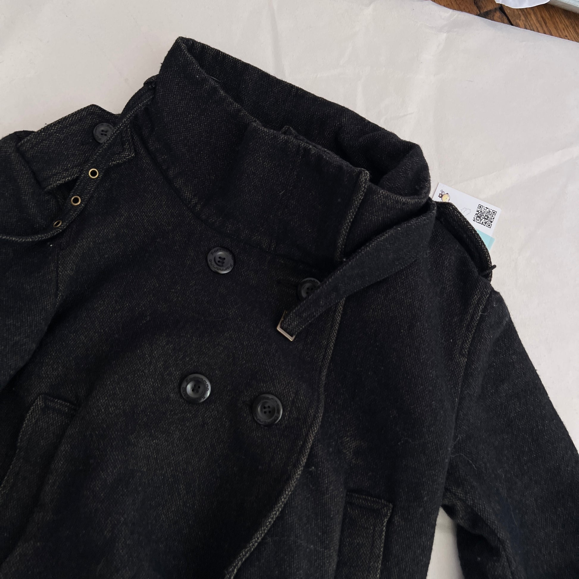 Fornarina Dark Grey Asymmetric Wrap Funnel Neck Double Breasted Crop Jacket