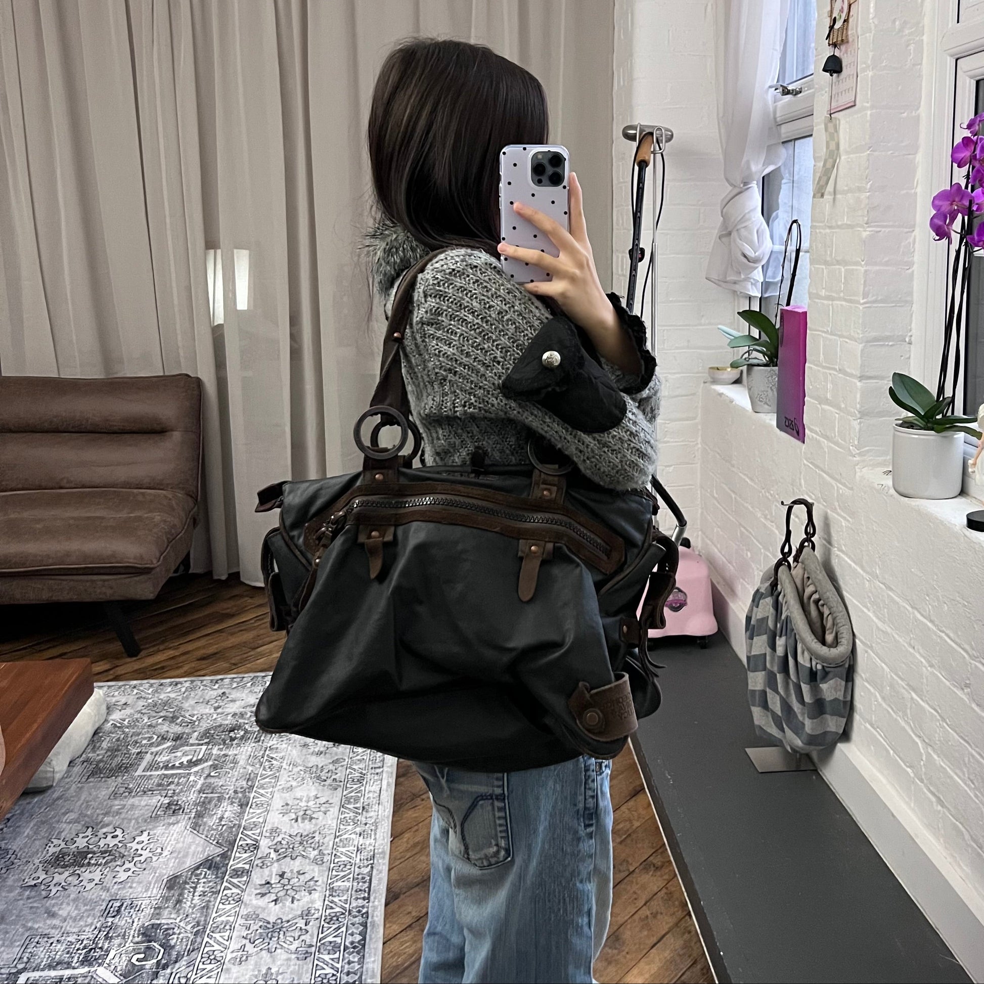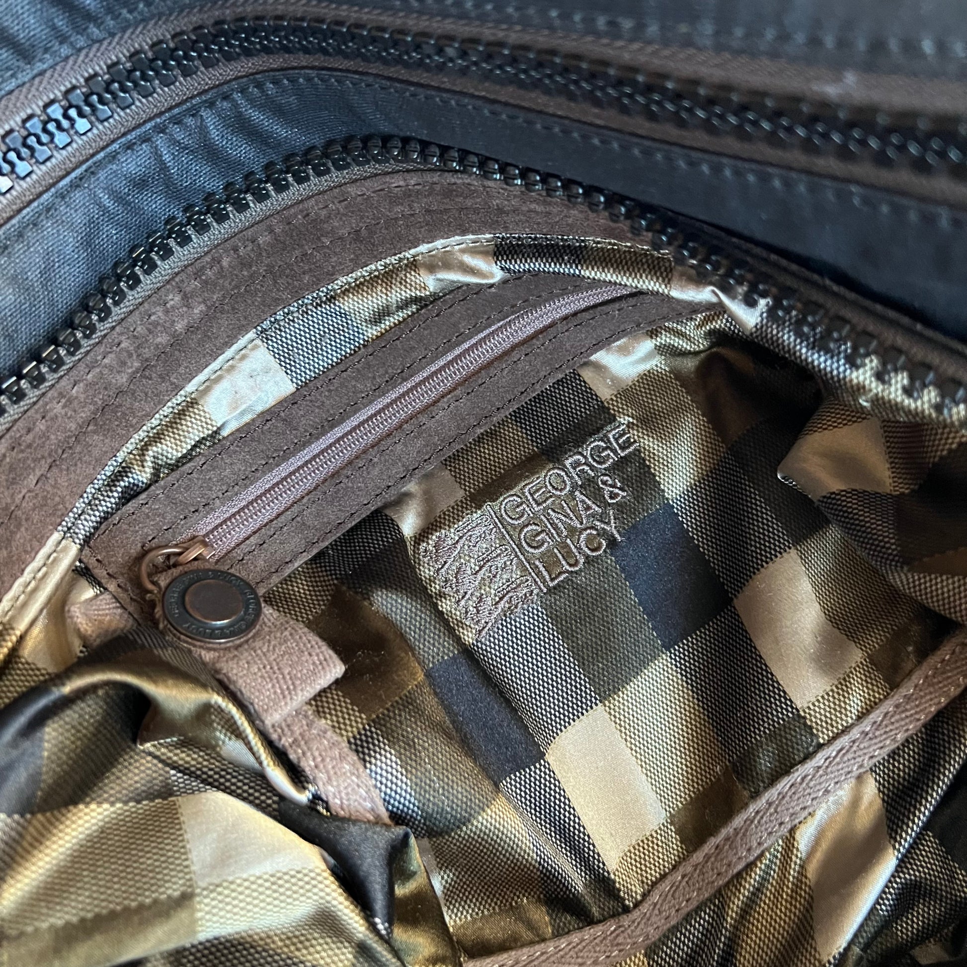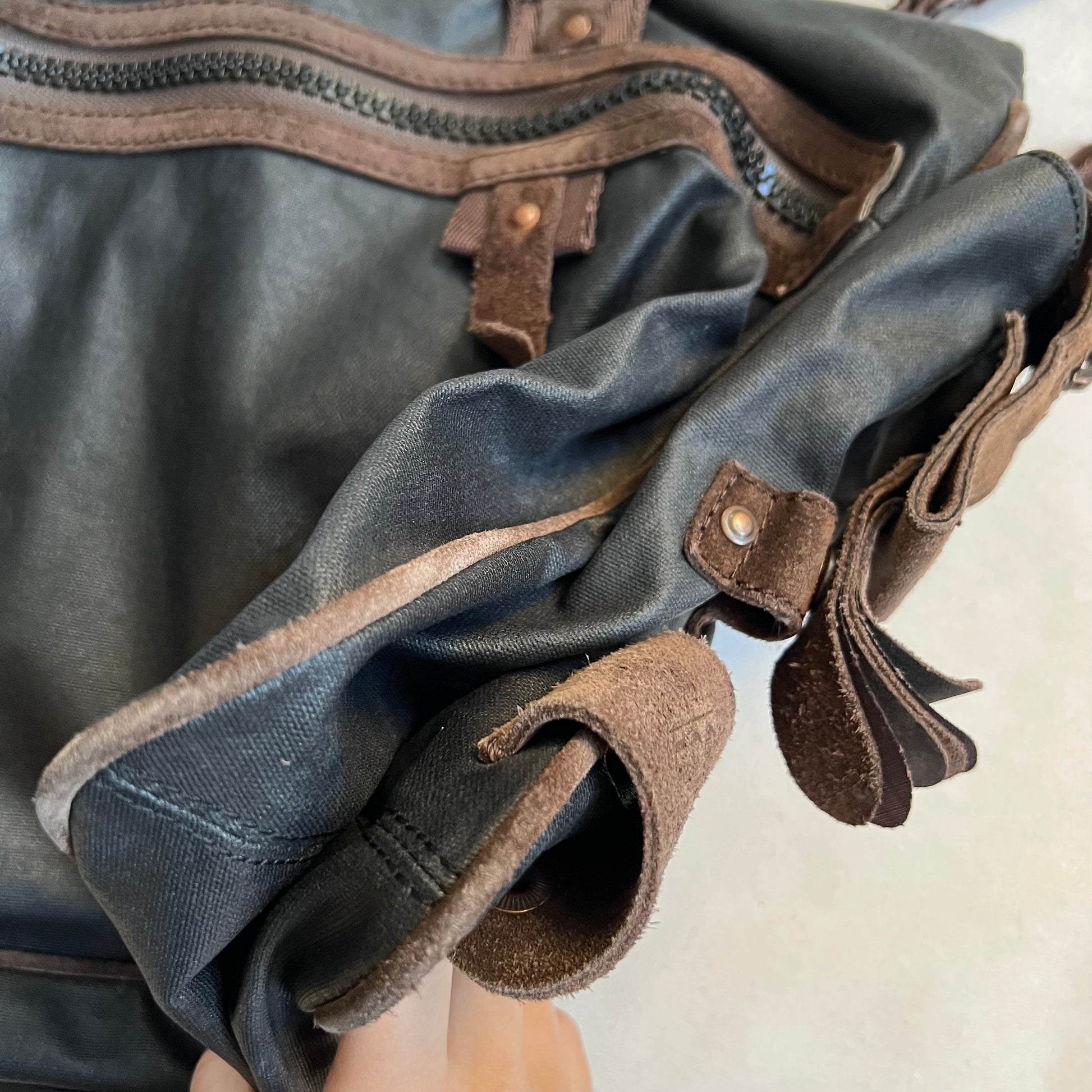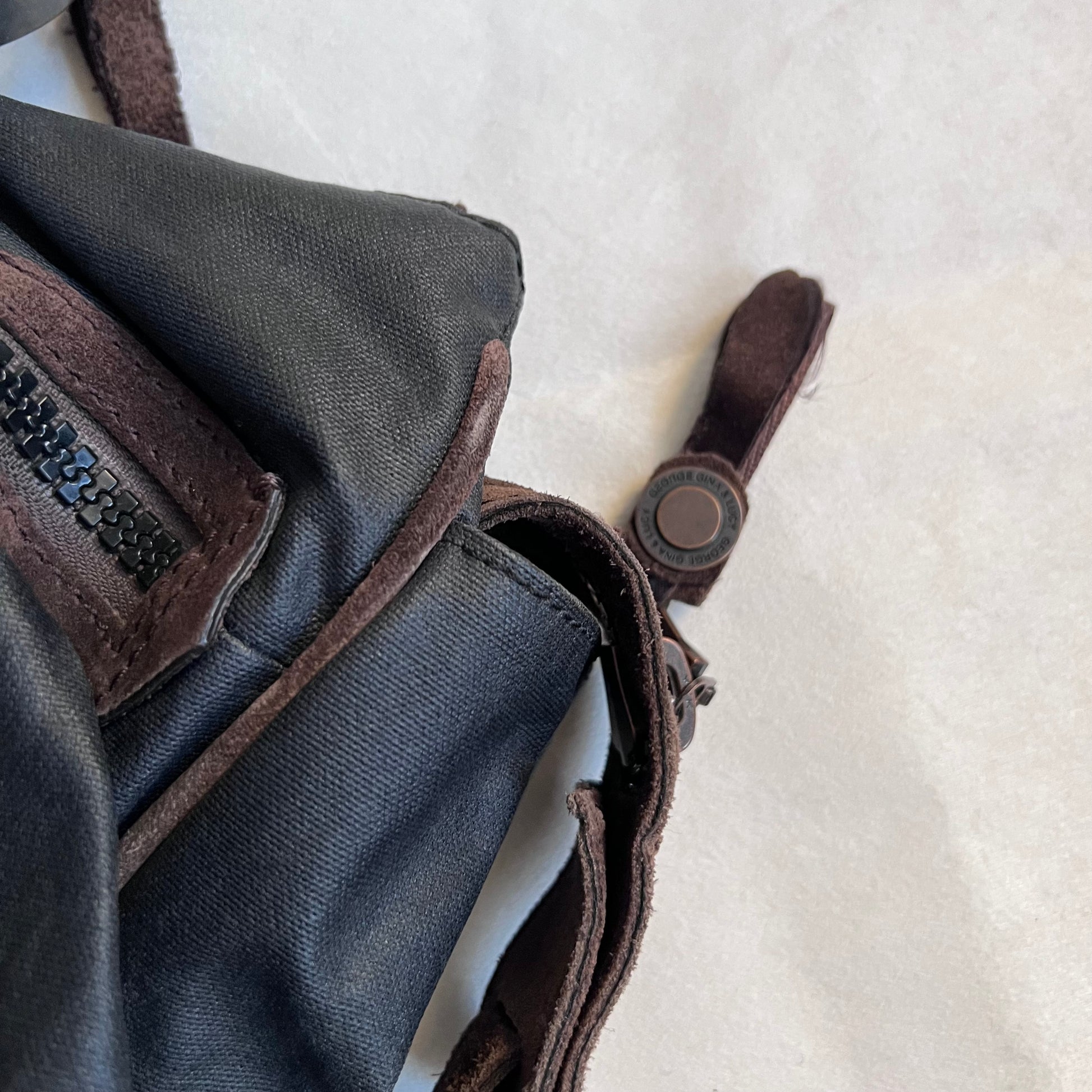 george gina & lucy canvas nuback brown suede buckle straps large tote size shoulder bag