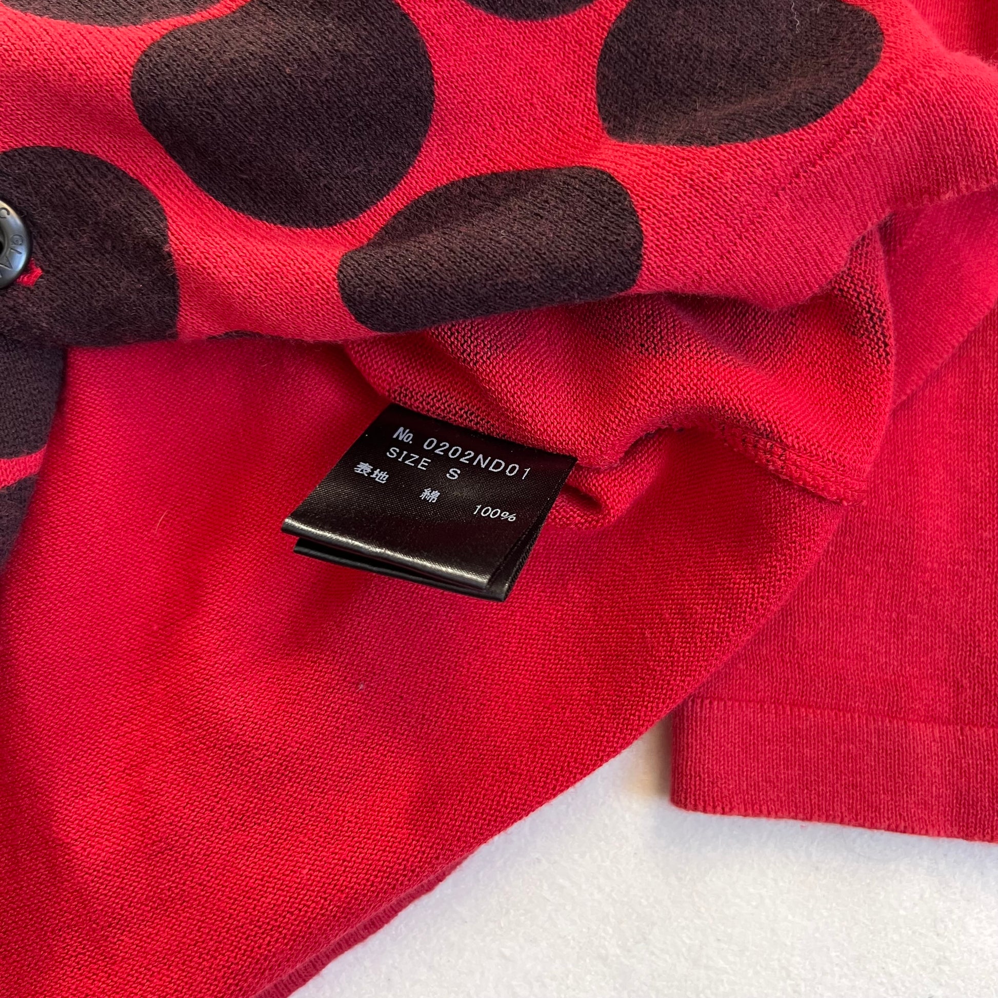 hysteric glamour faded raspberry red polka dot graphic long sleeve cardigan