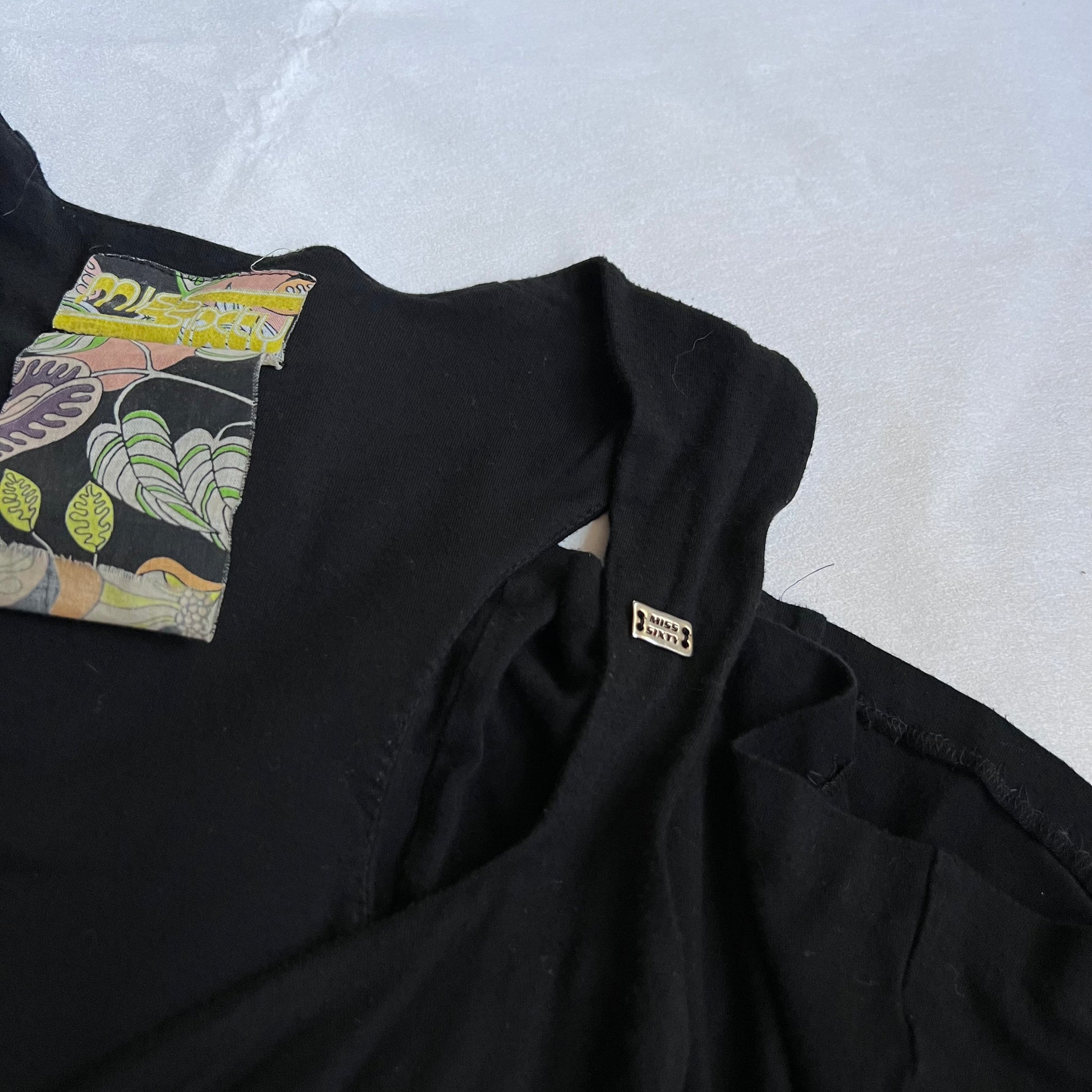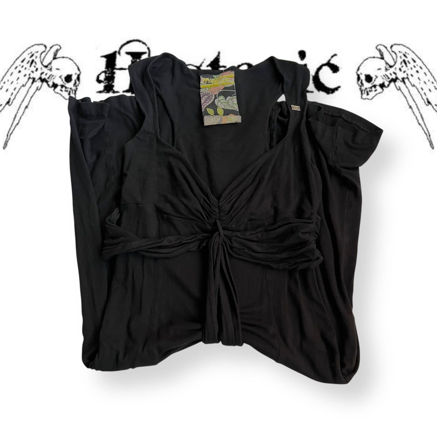 miss sixty black draped long ribbon wrap bust maxi dress