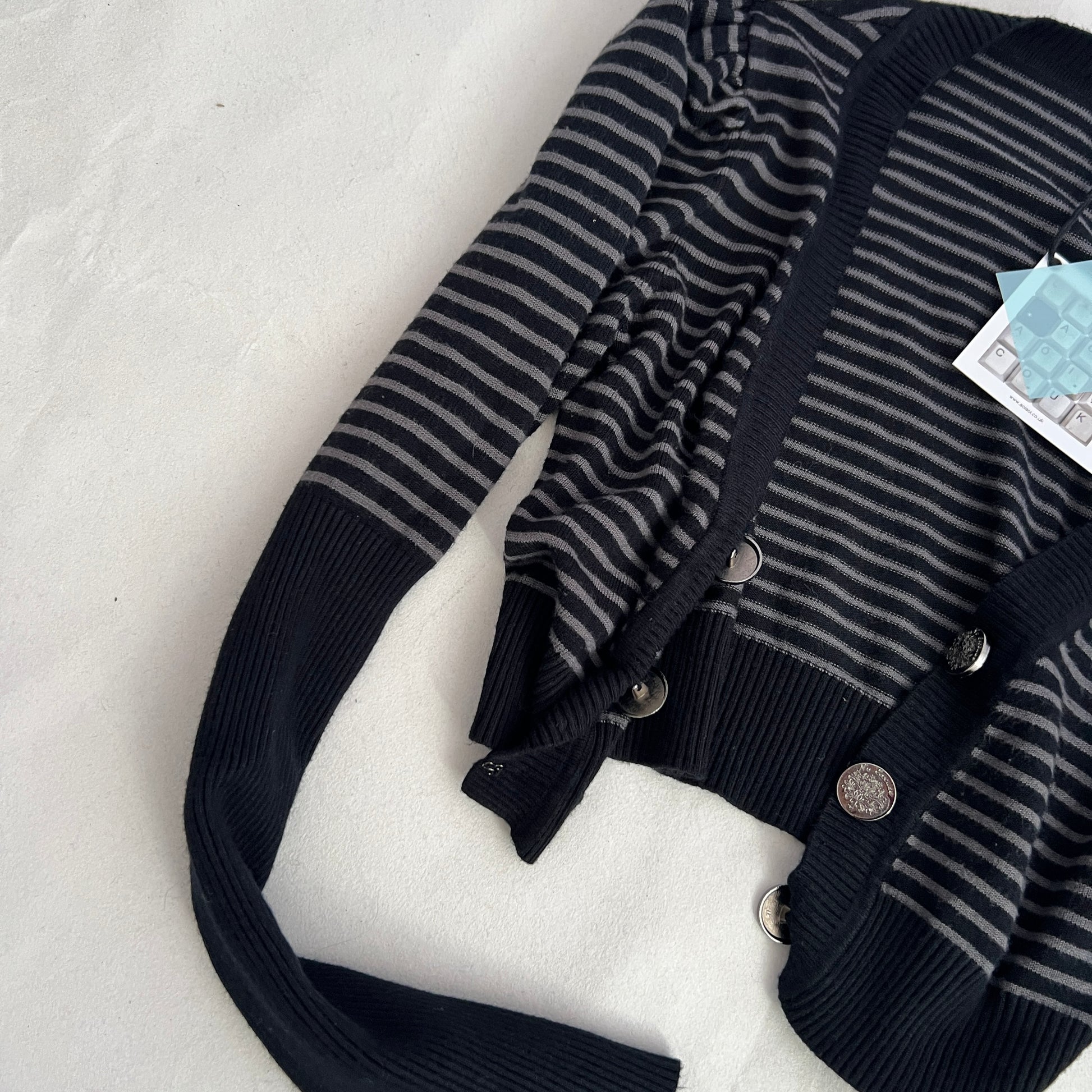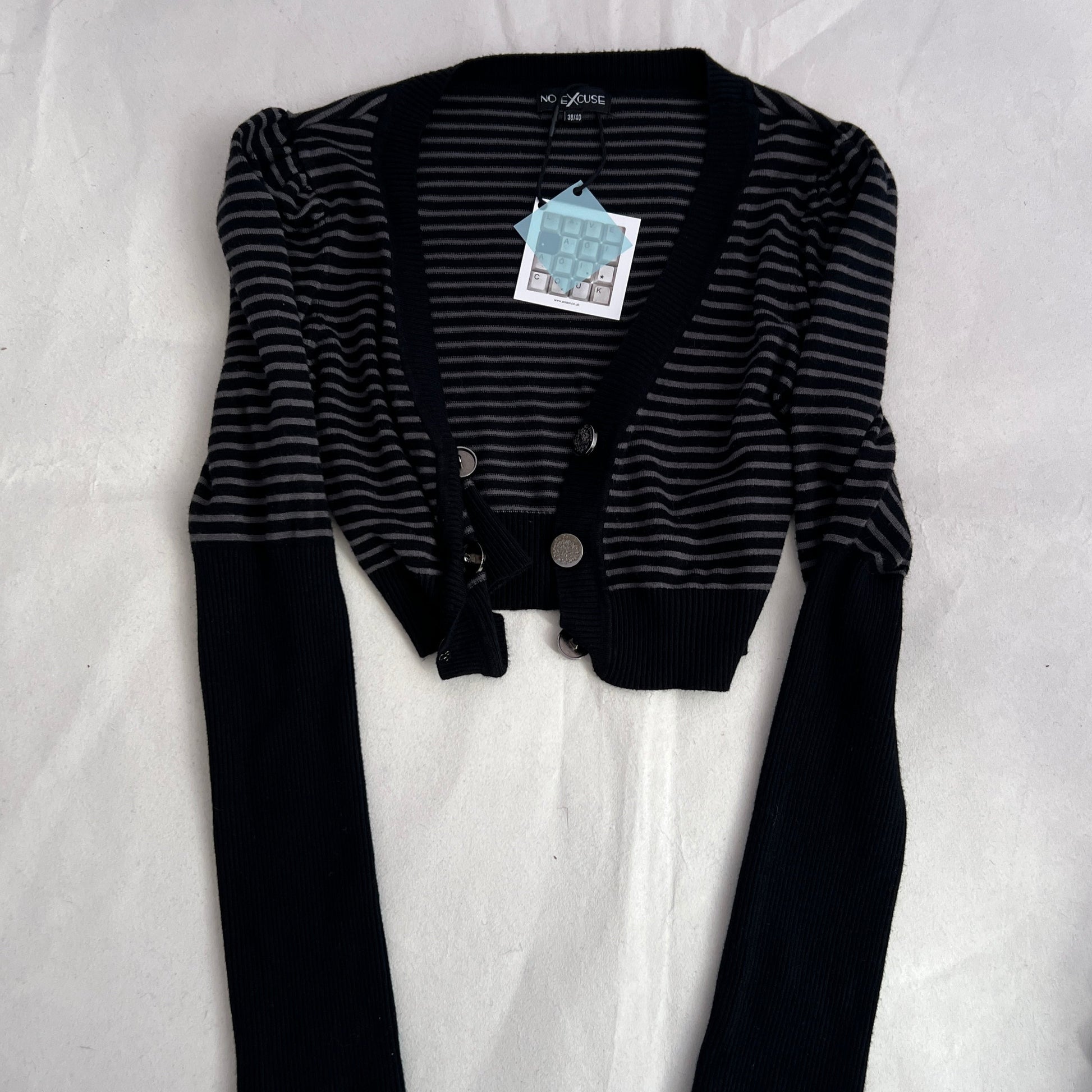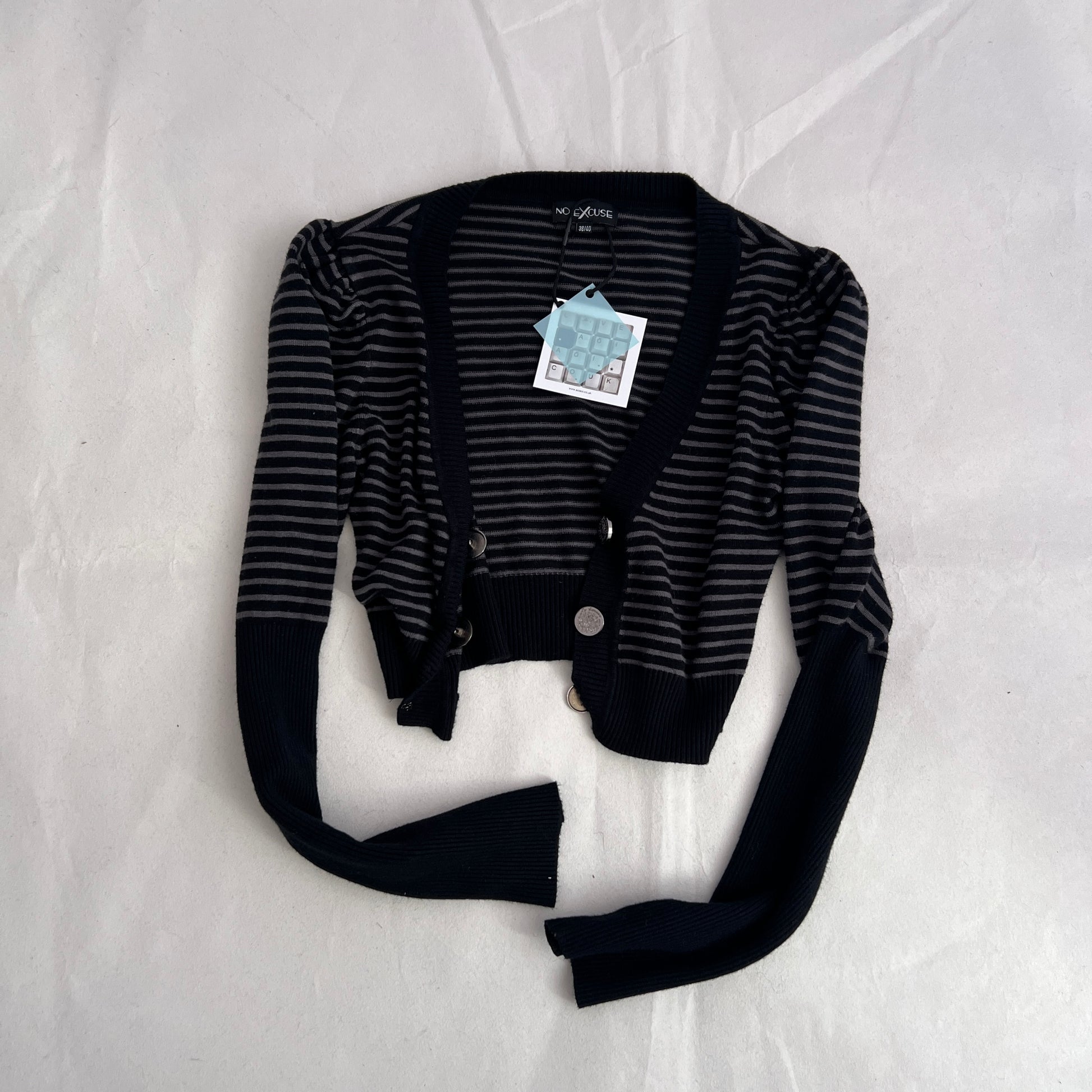 No Excuse Grey Navy Striped Puff Sleeve Cropped Fitted Cardigan