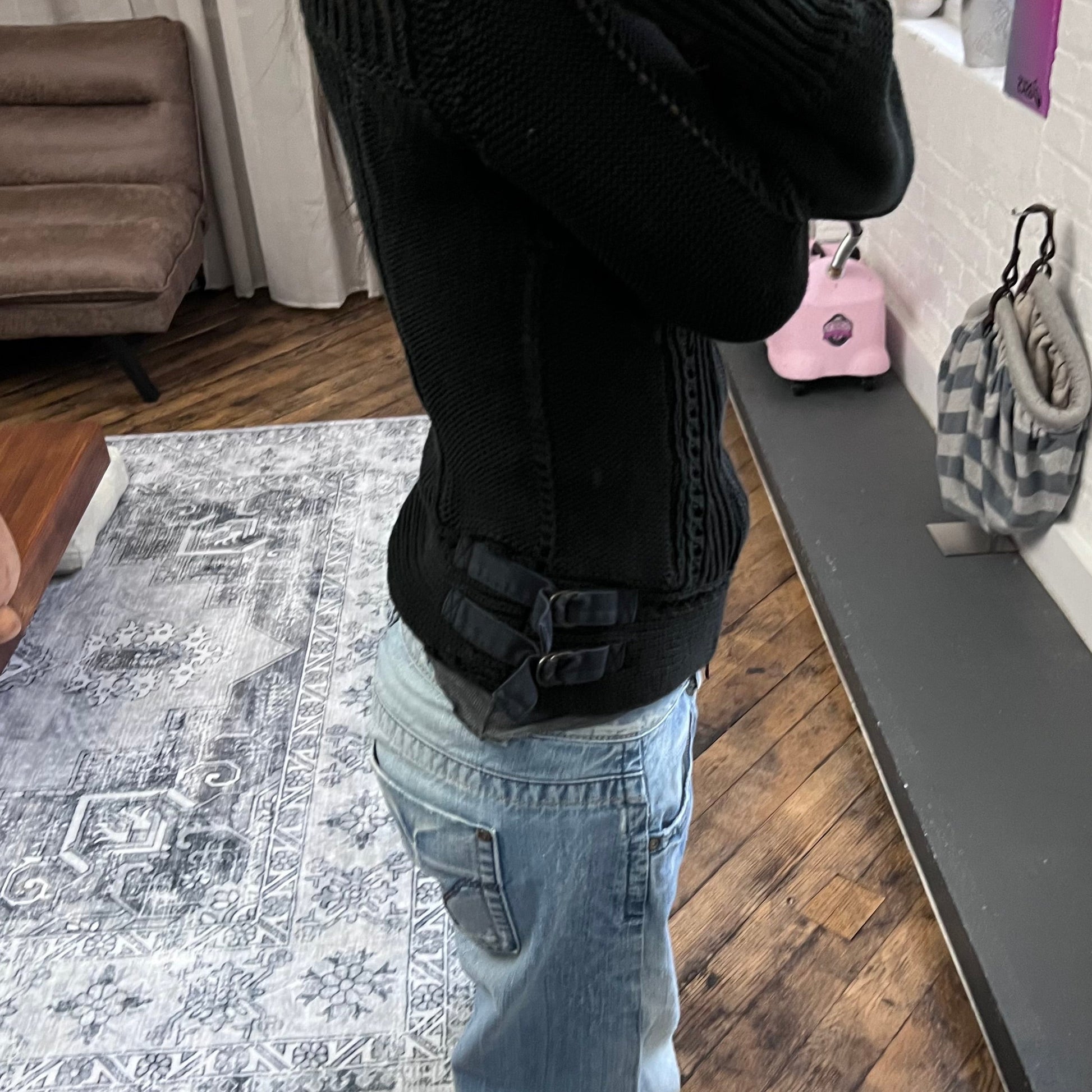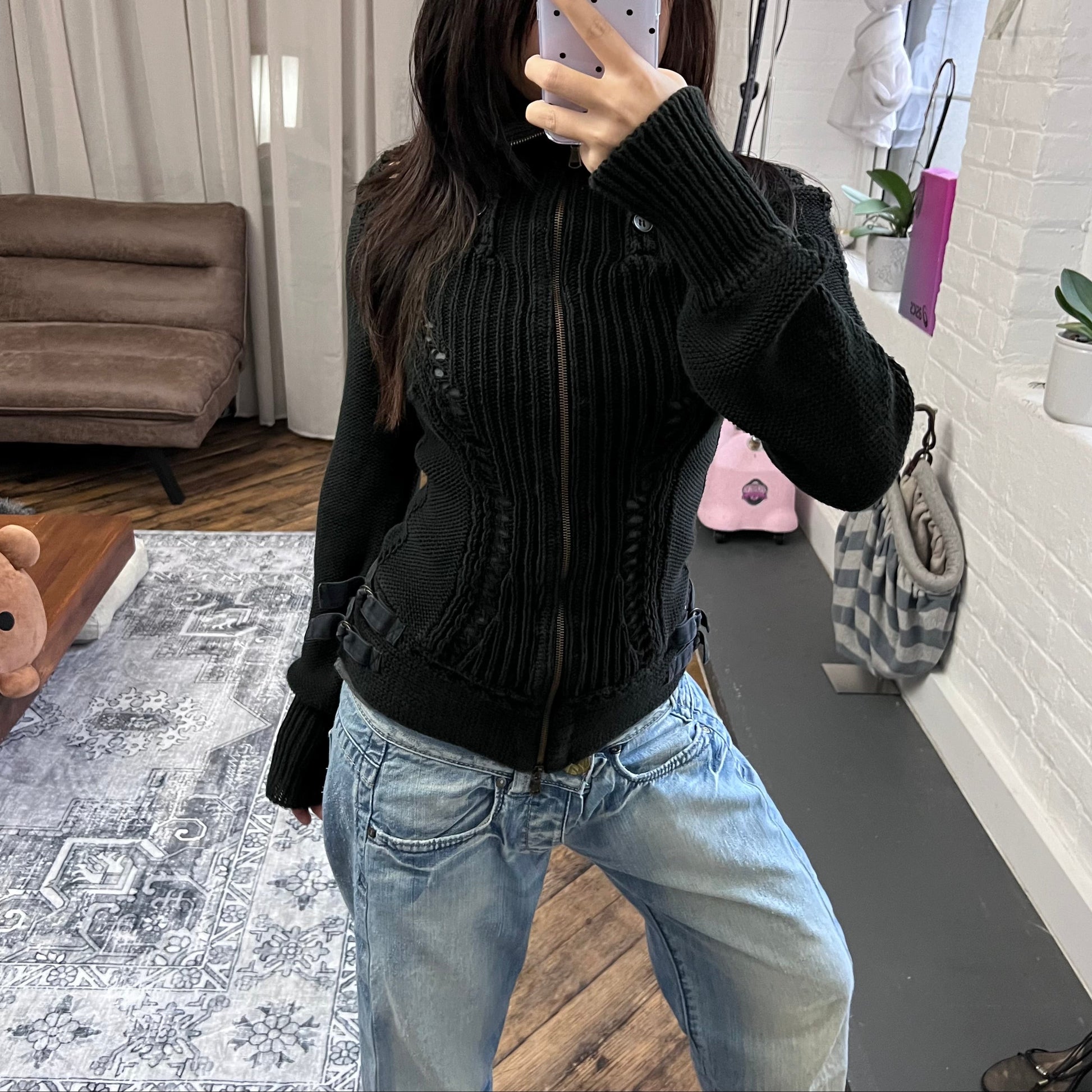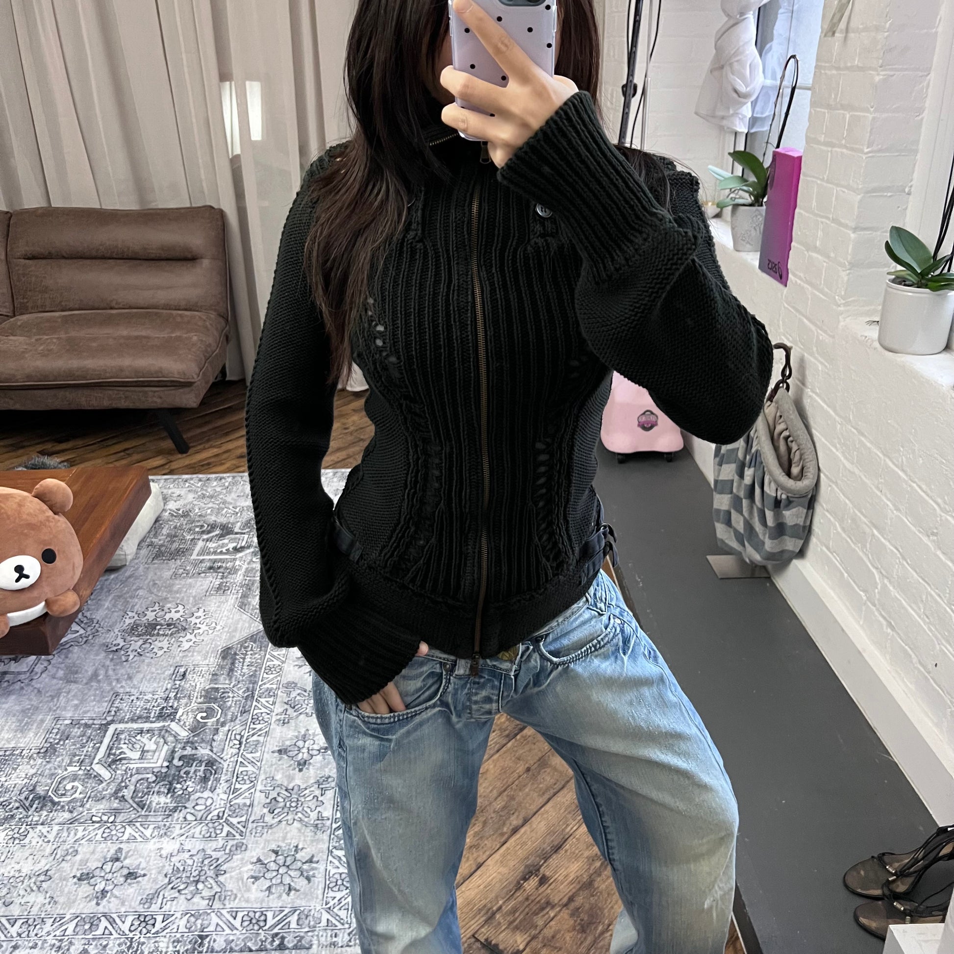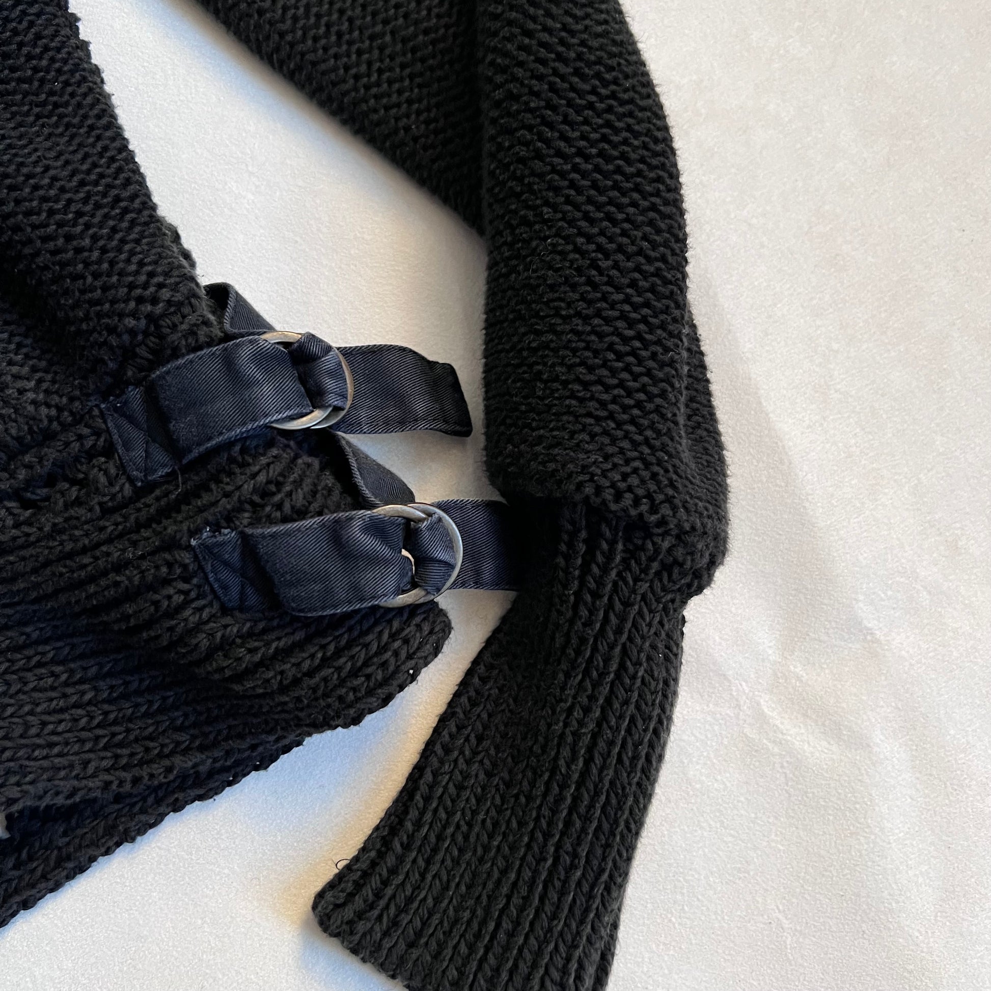 patrizia pepe black long sleeve button accent collar thick knit cardigan jacket