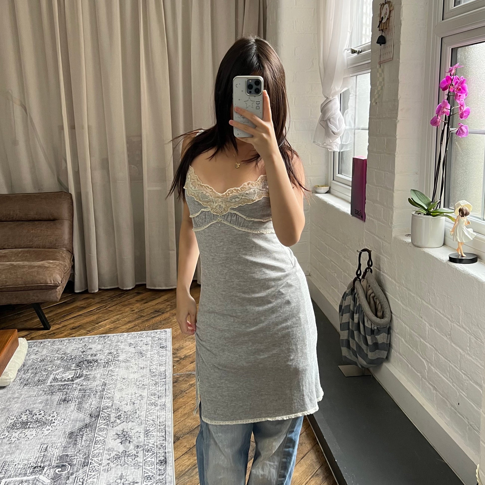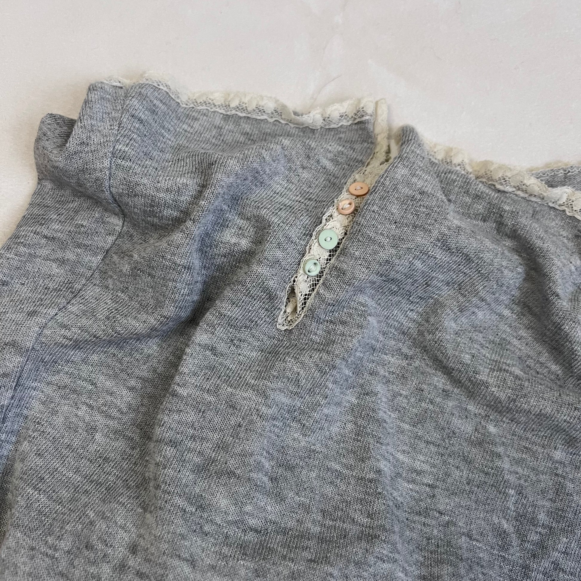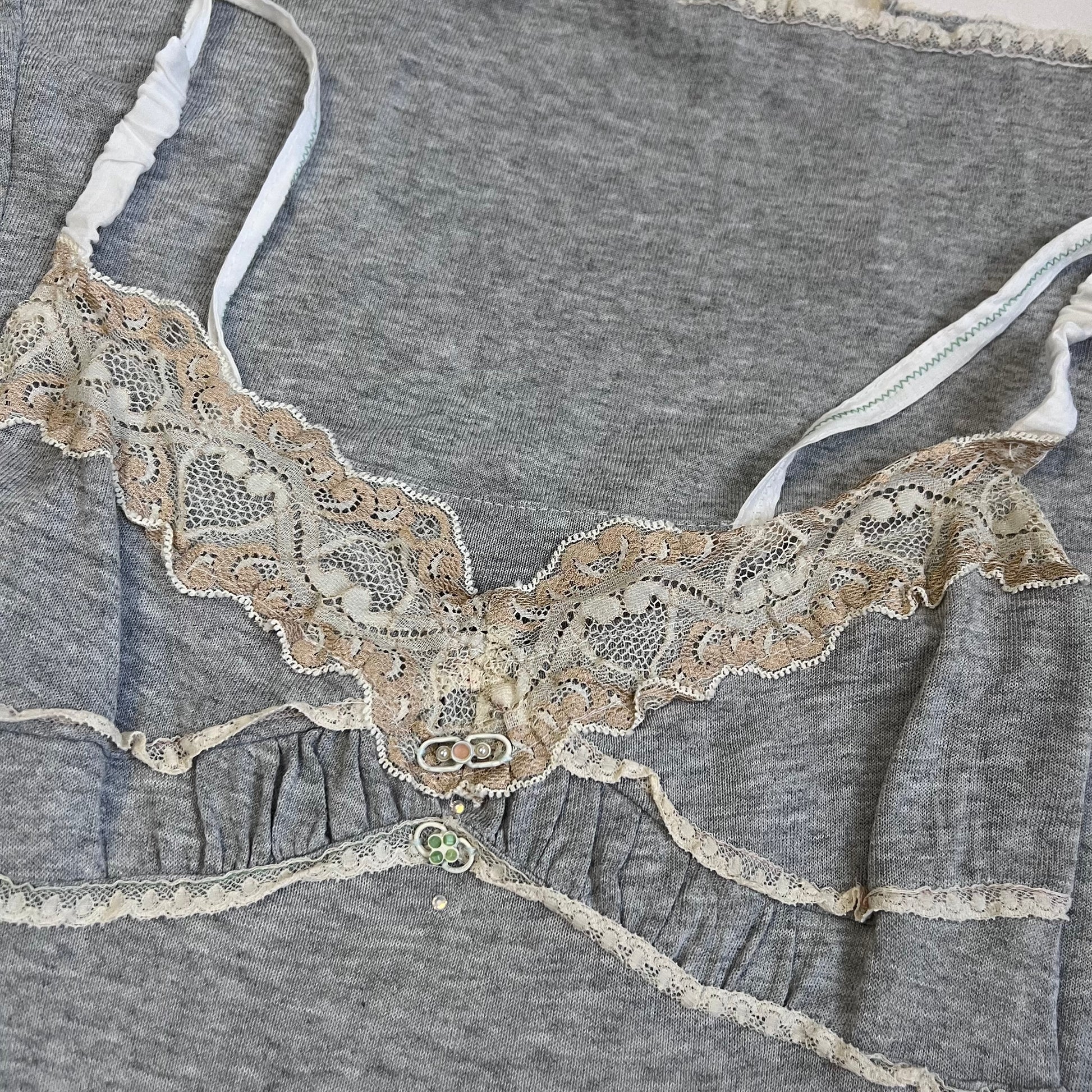 romantic grey elisa caveletti beige lacey ruched pastel button midi dress