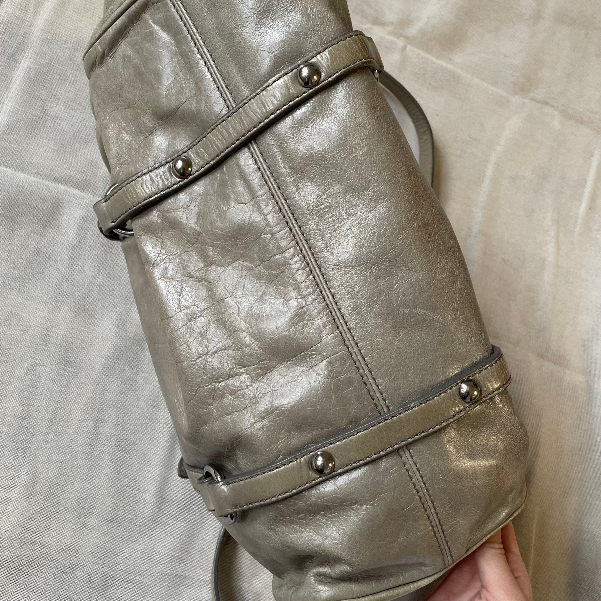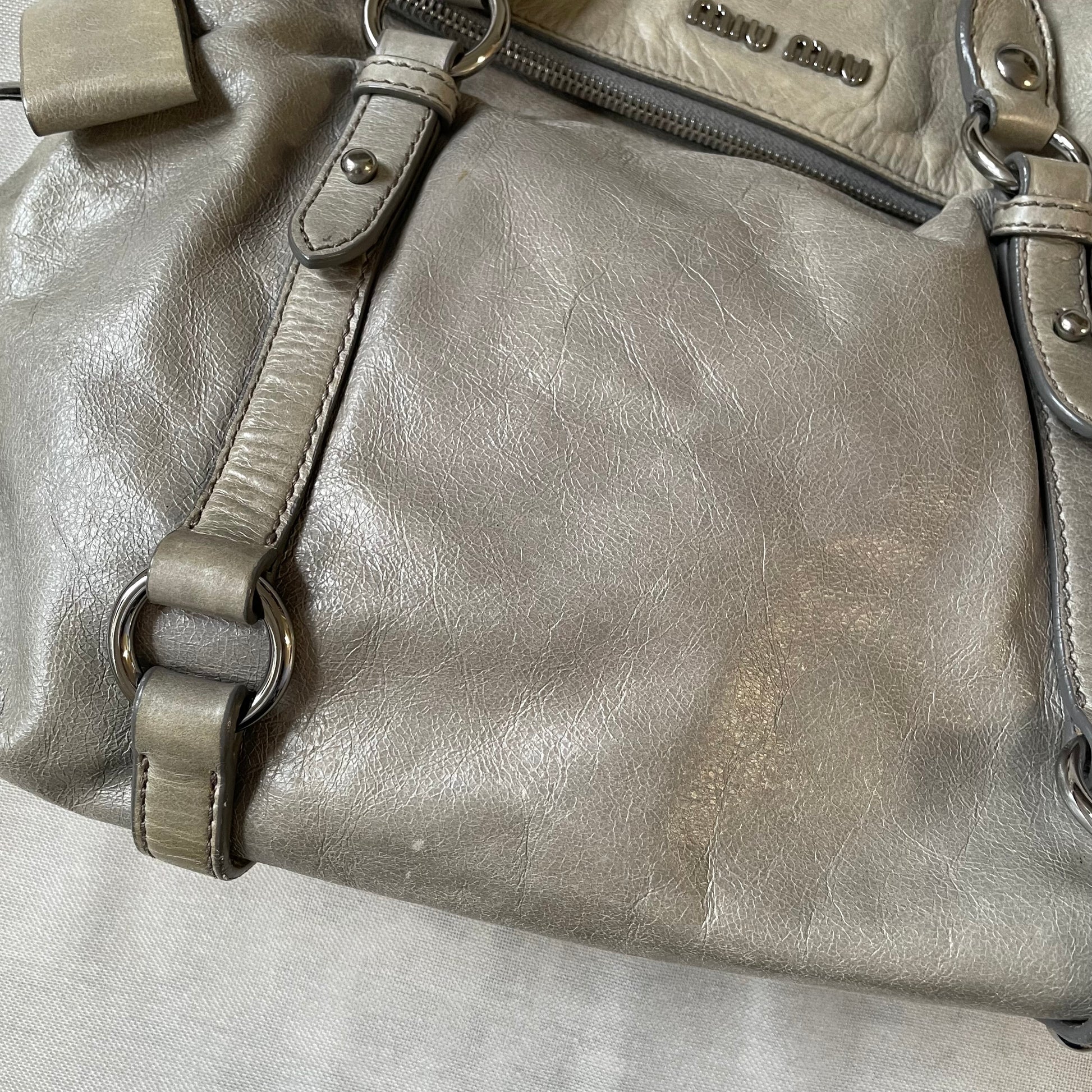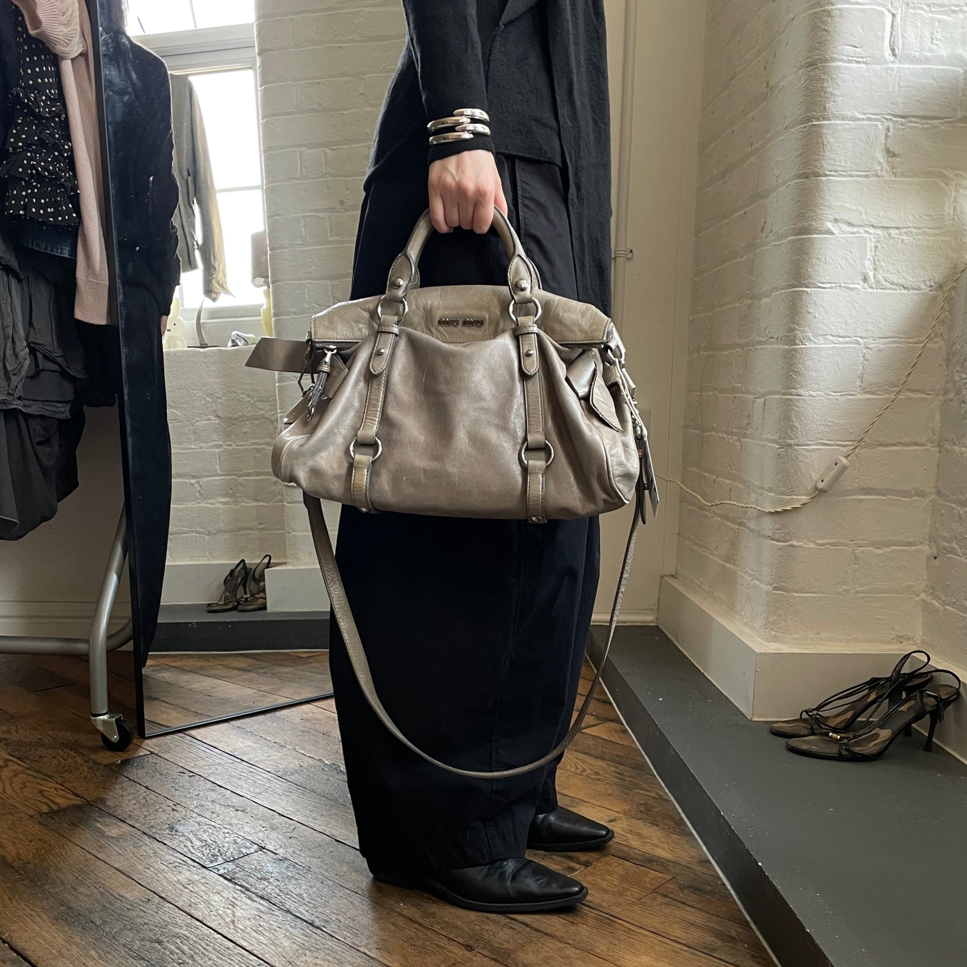 sage green leather silver hardware miu miu vitello lux ribbon 2 way crossbody handbag