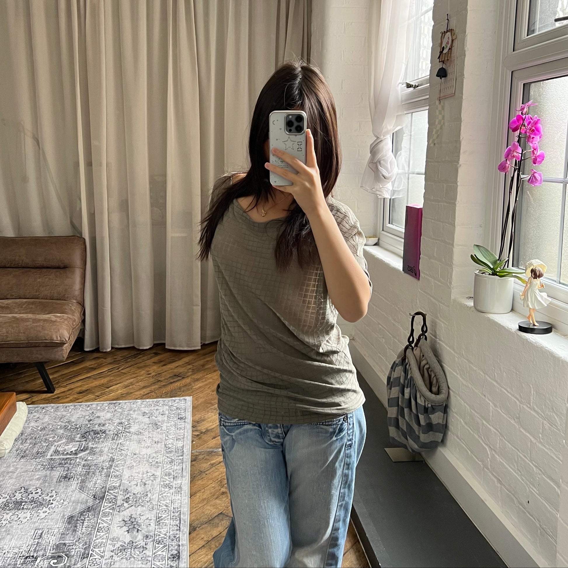 sarah pacini khaki linen patchwork style slouchy oversized knit