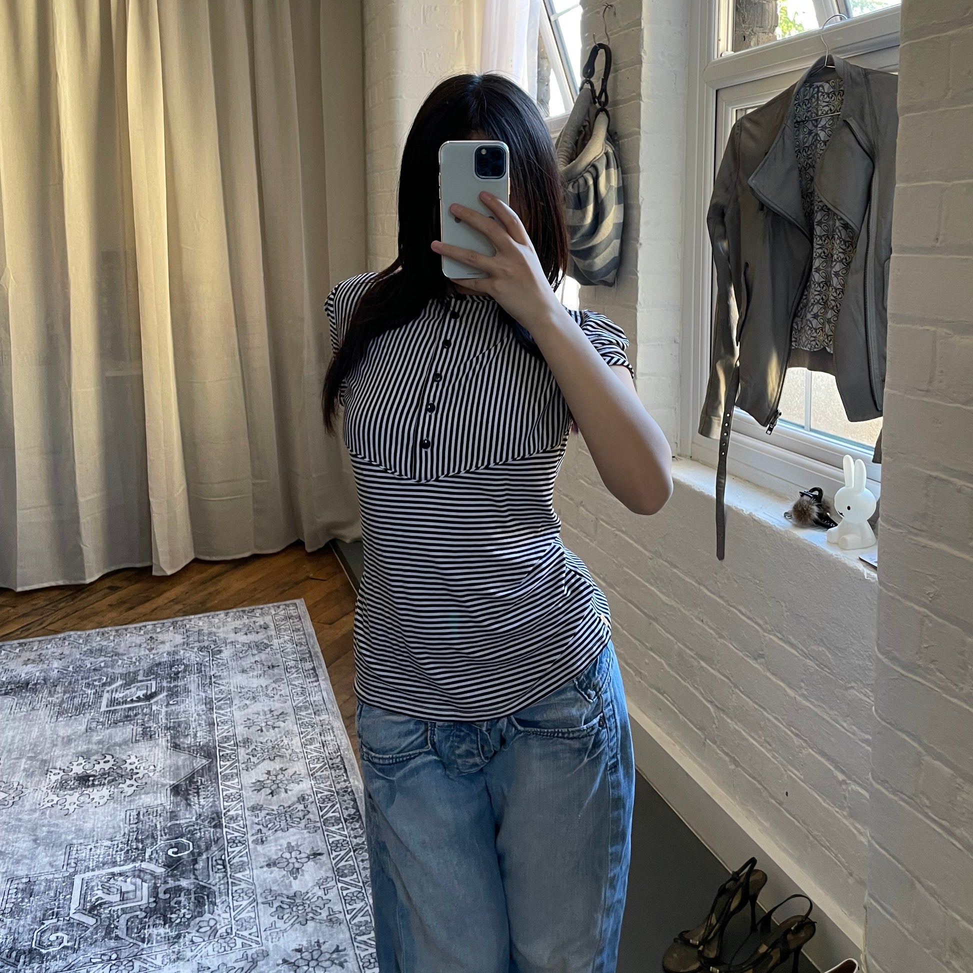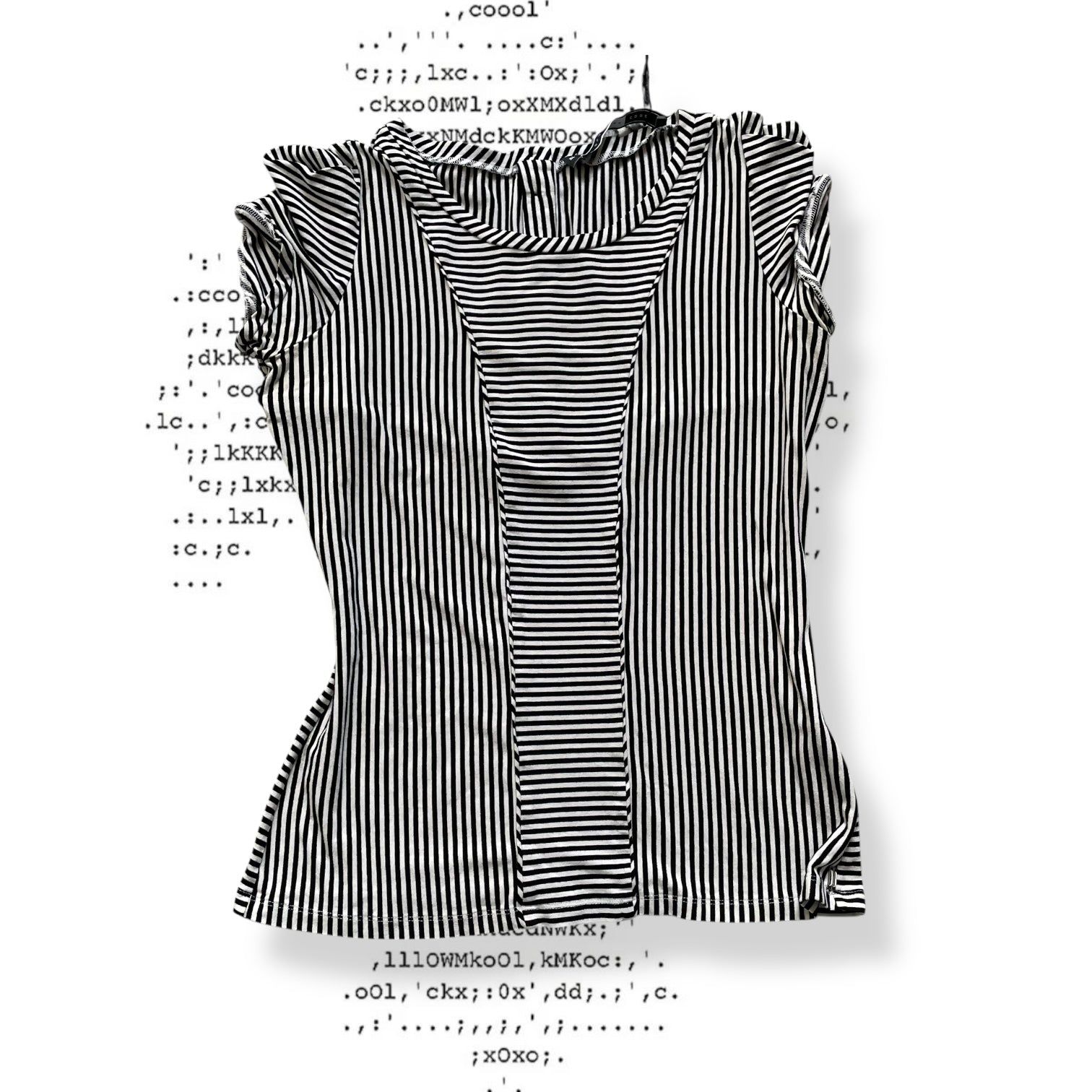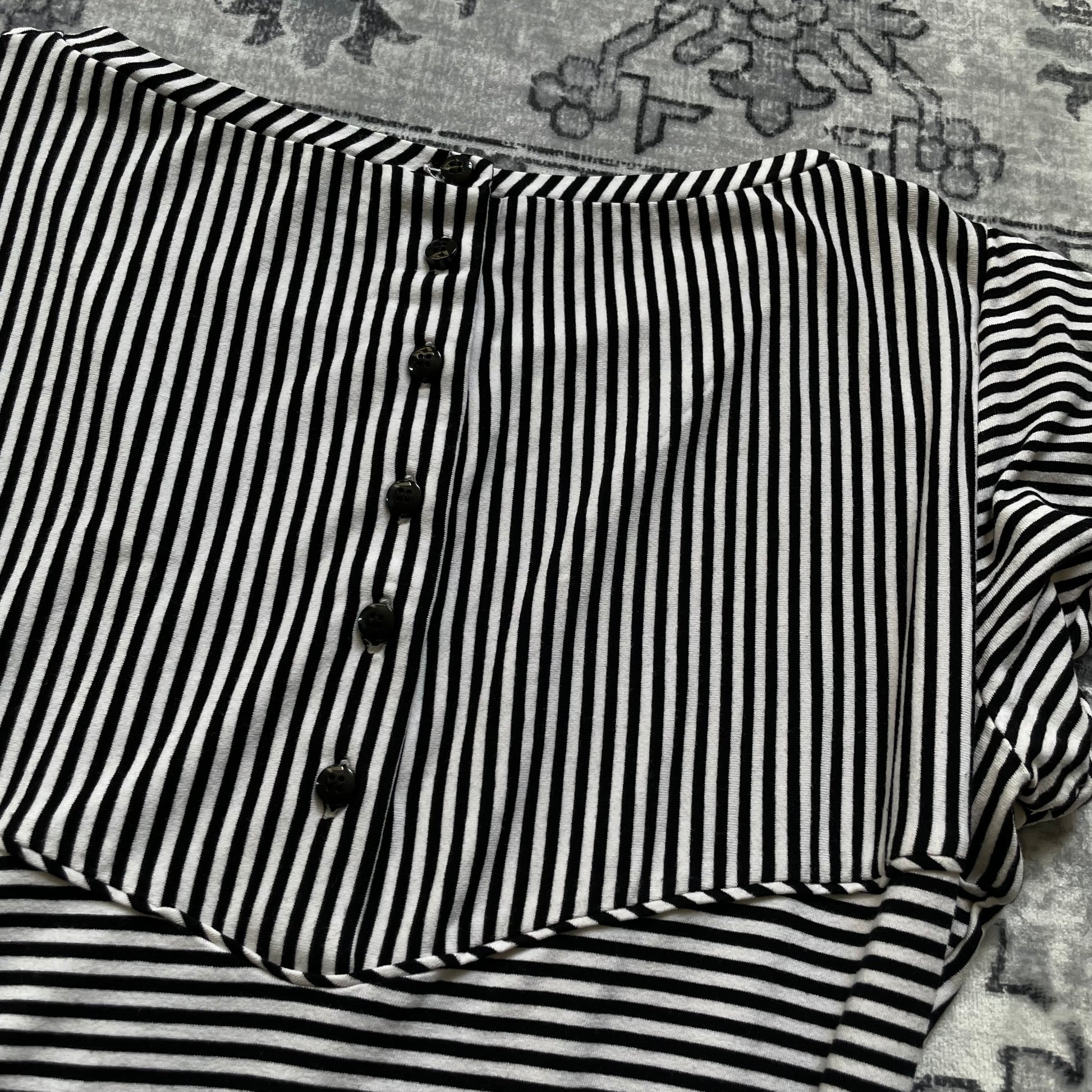 sportmax black white black reversible 1/4 button diagonal striped t shirt