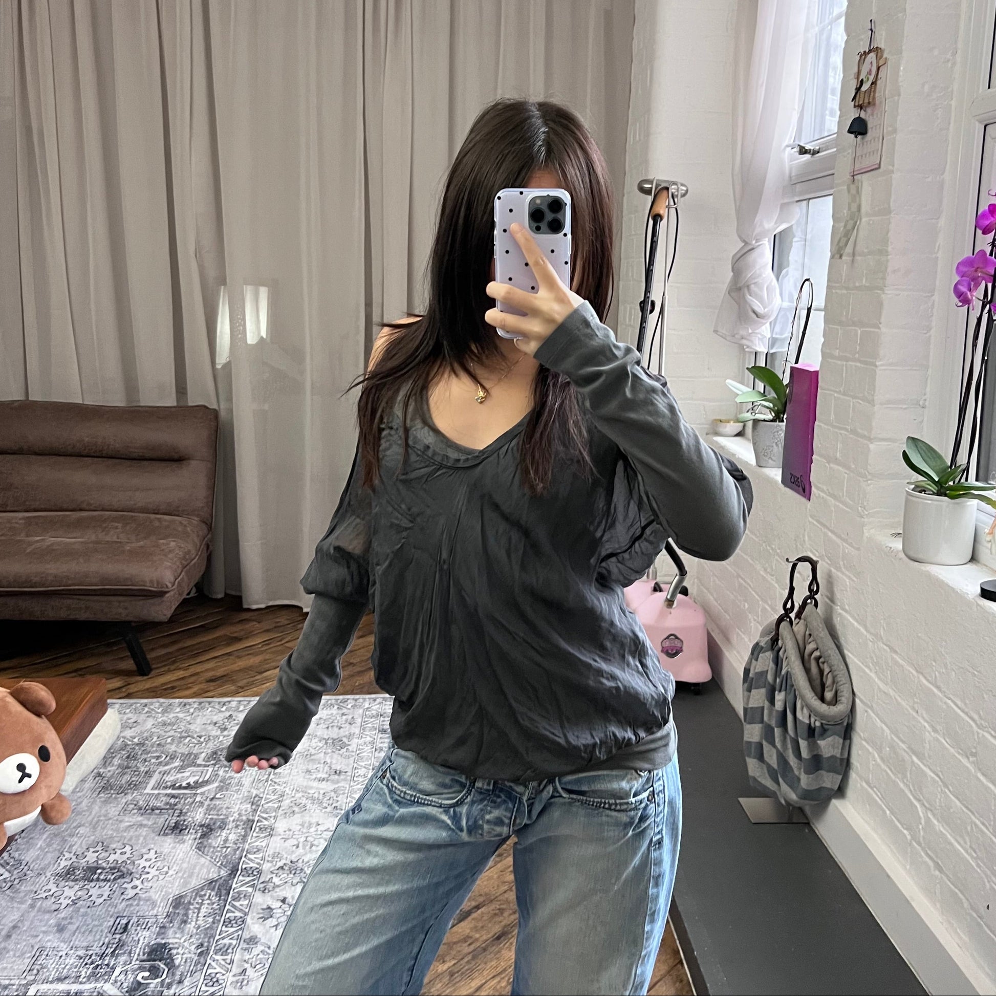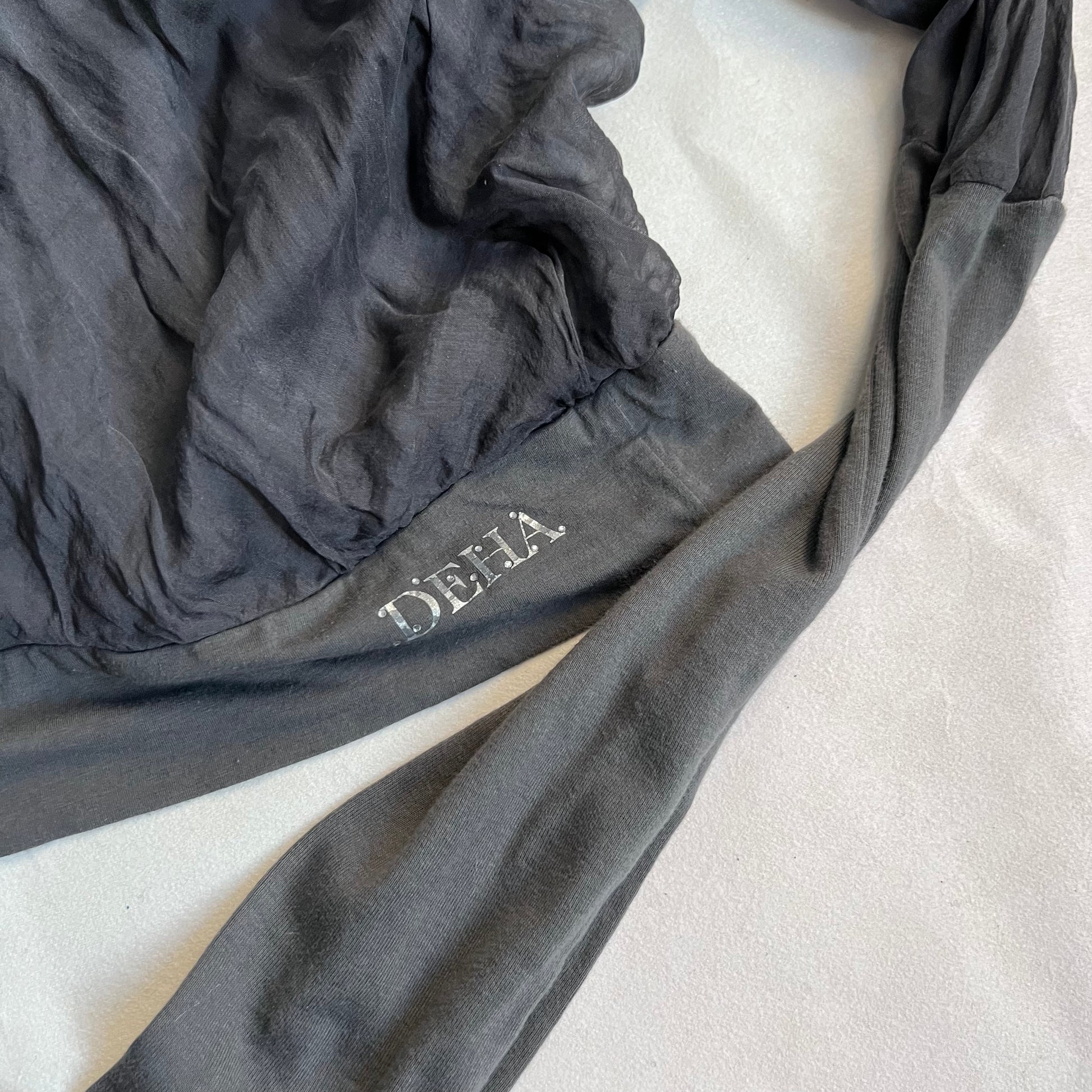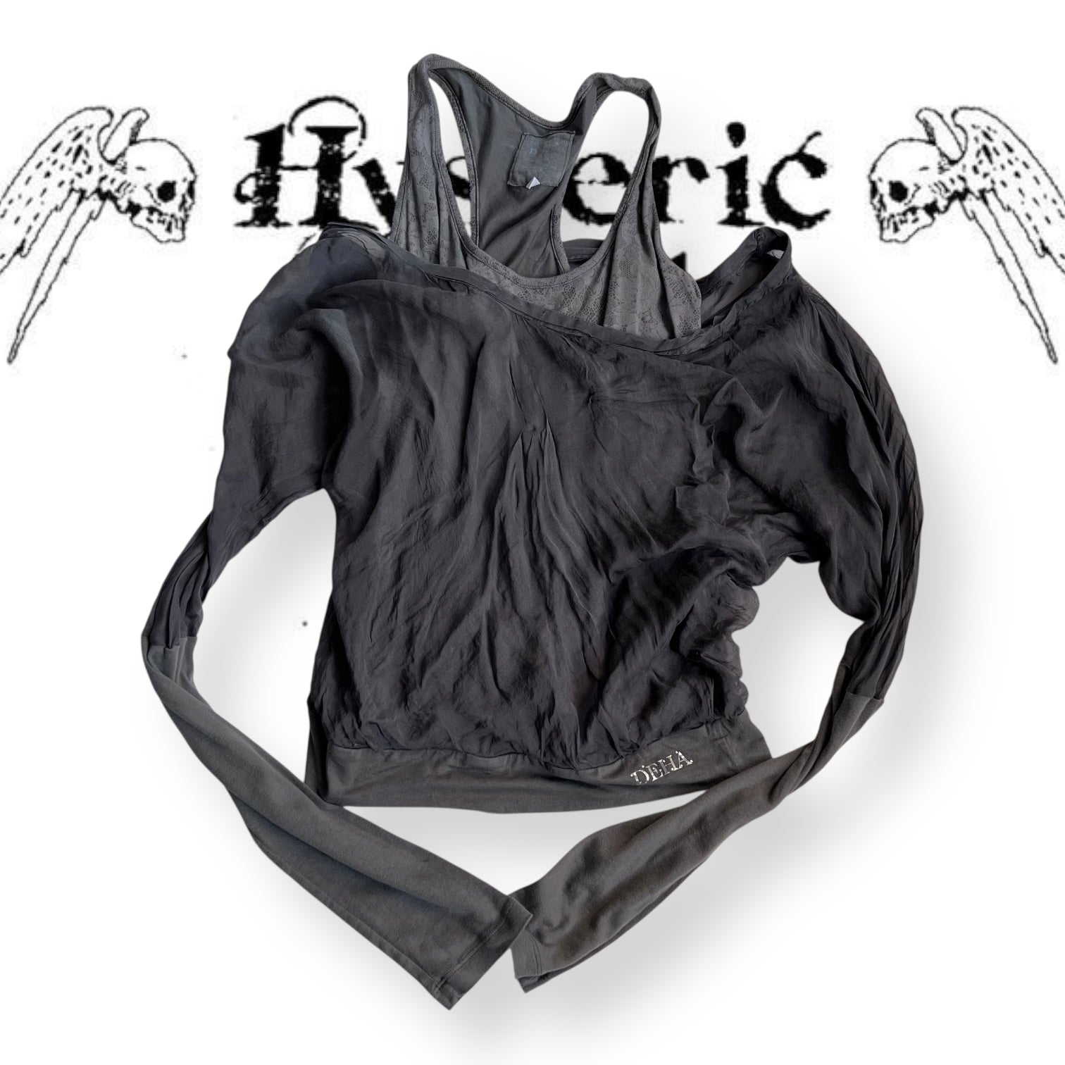 vintage deha silk grey lacey tank top and off the shoulder long sleeve layered top