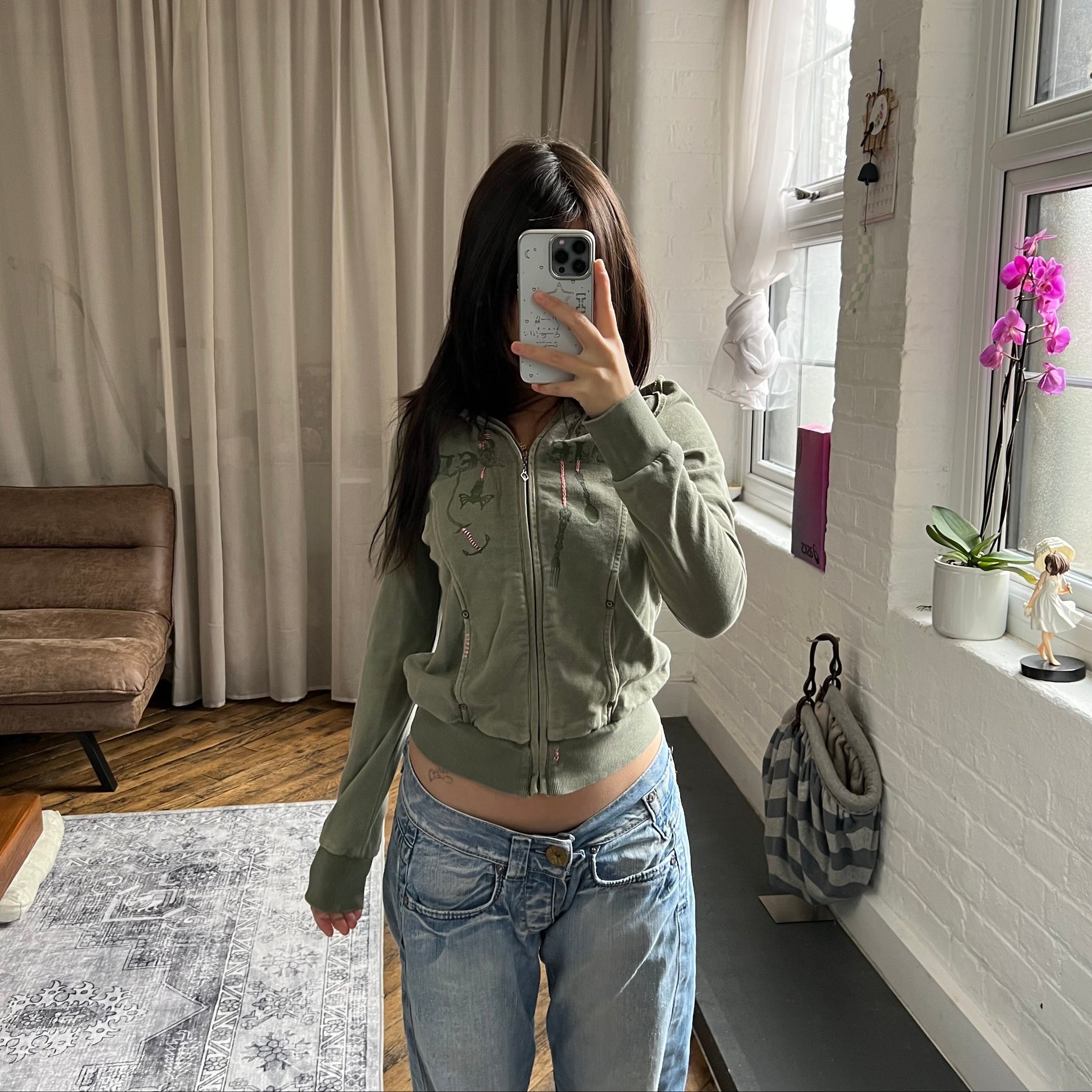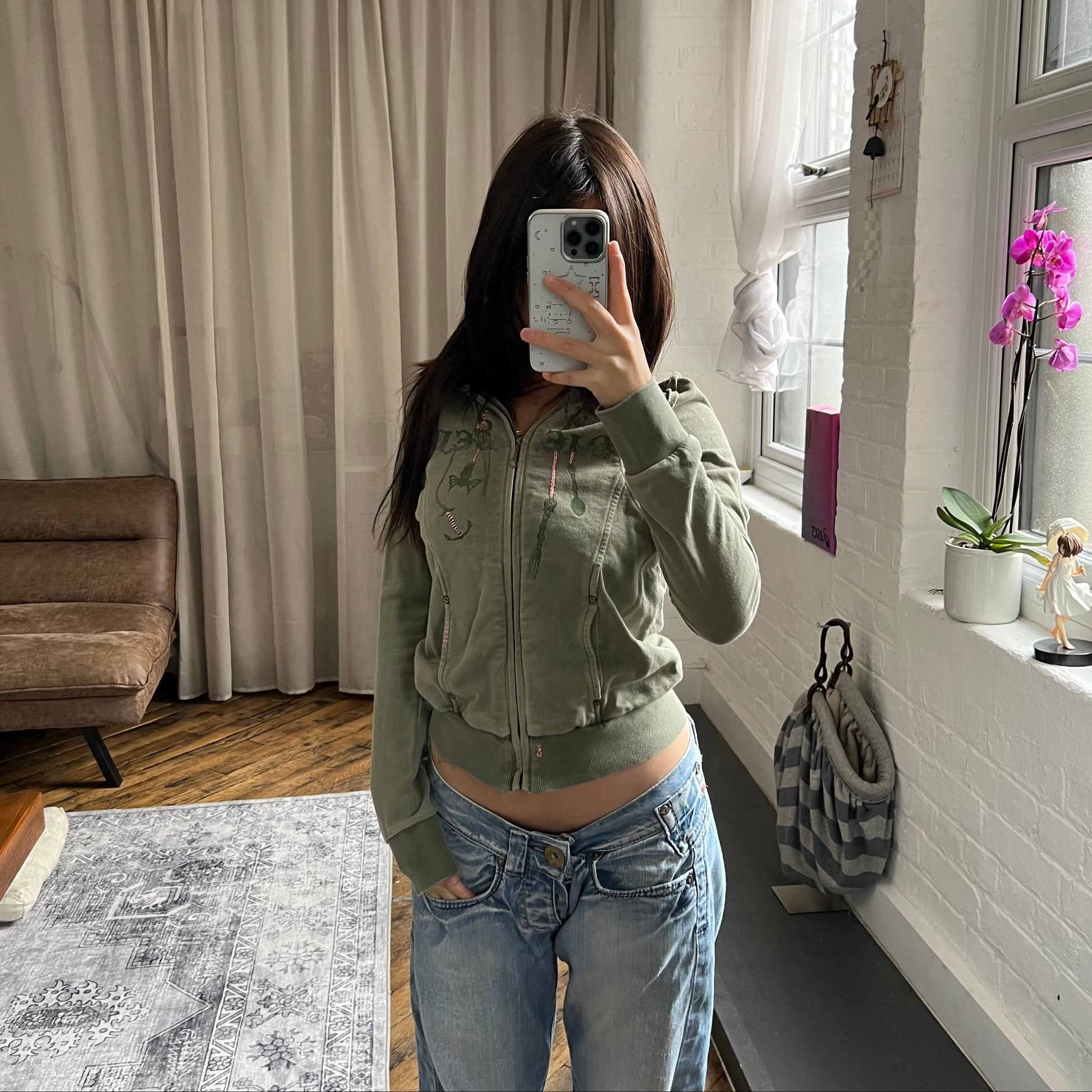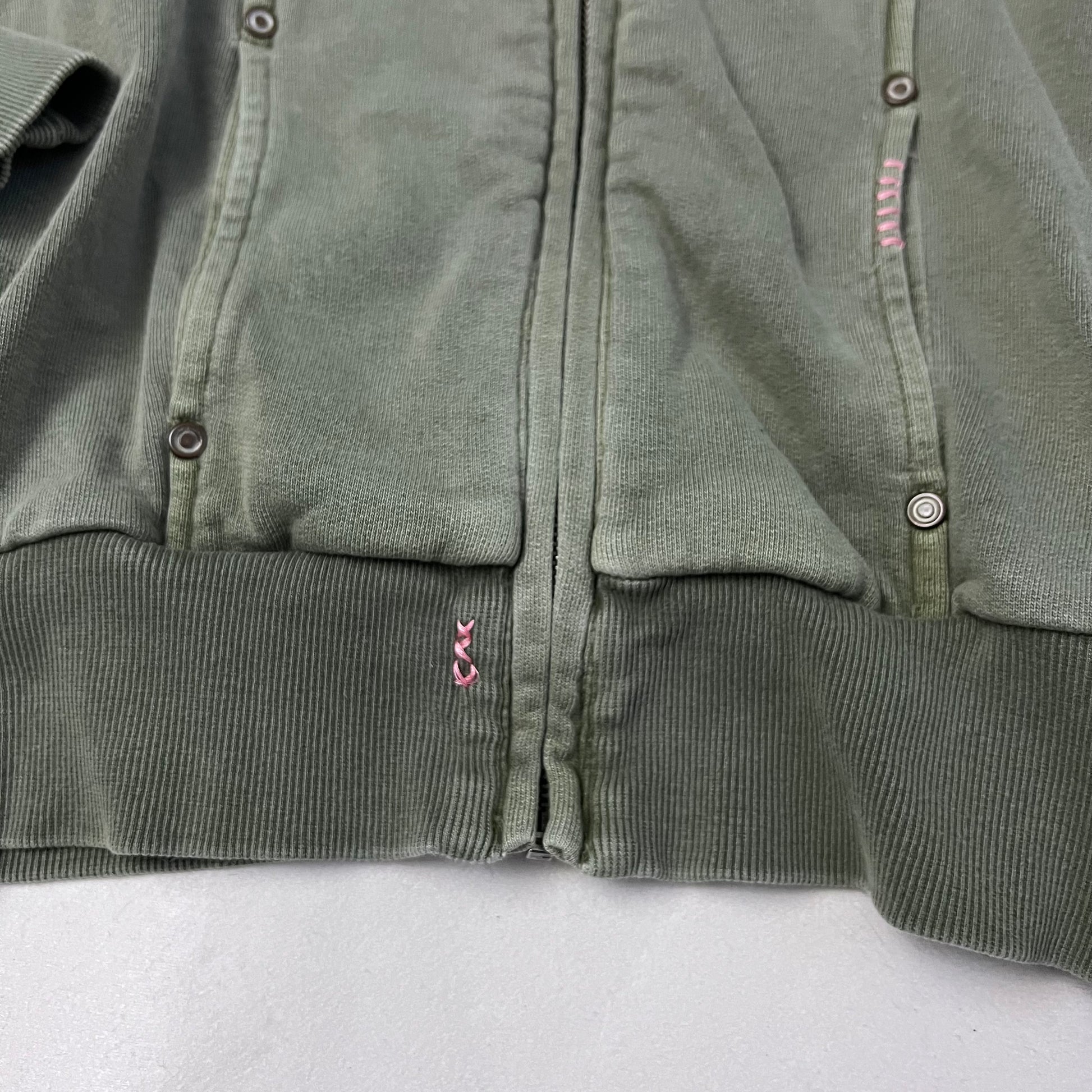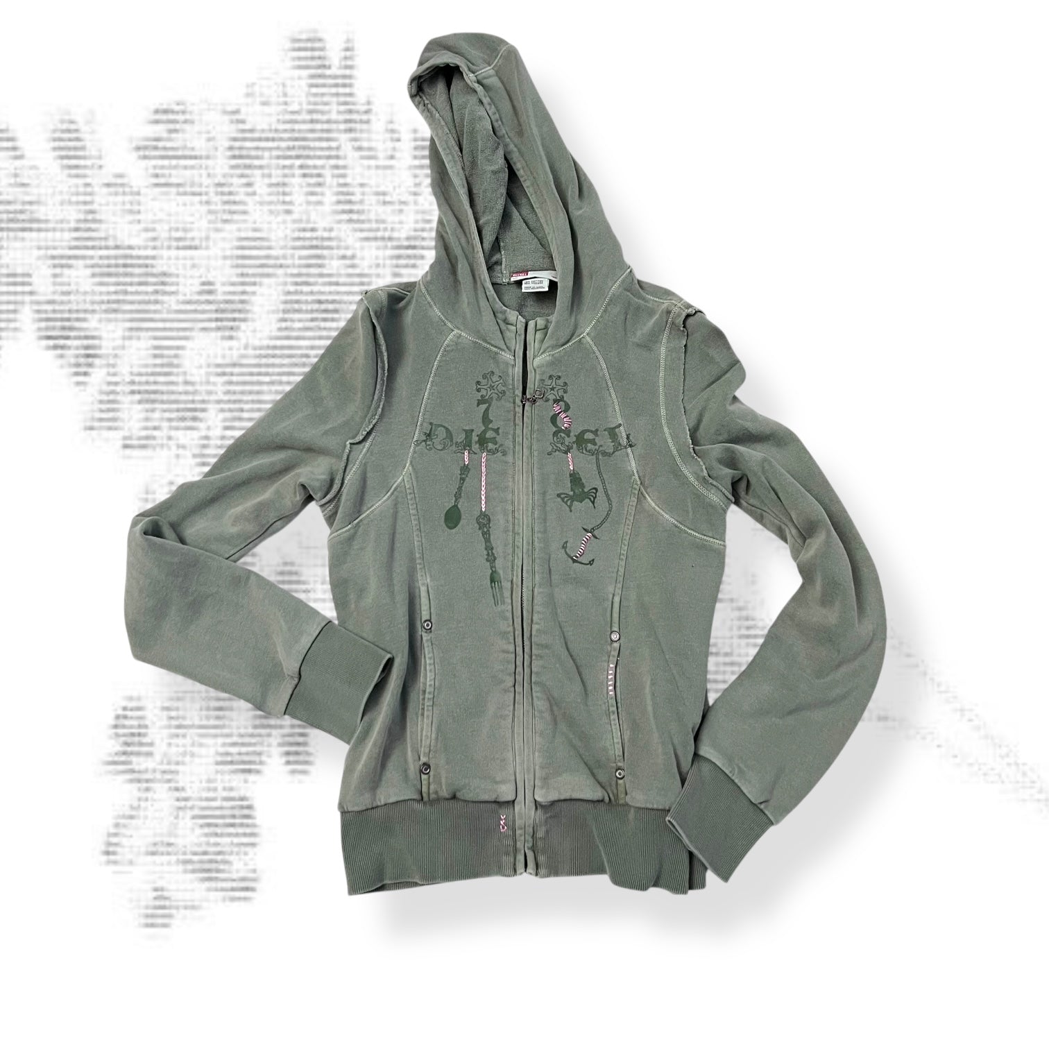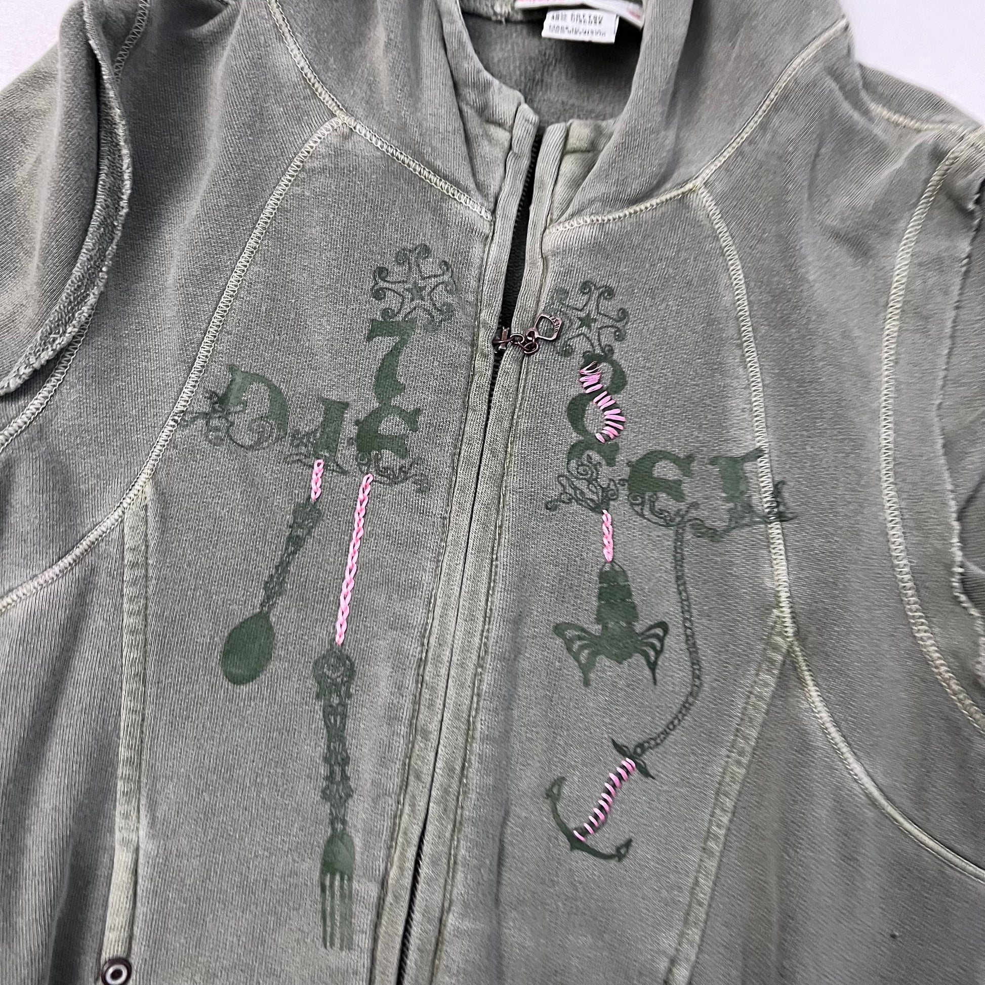 vintage diesel red tag khaki embroidery ornament text long sleeve zip hoodie jacket