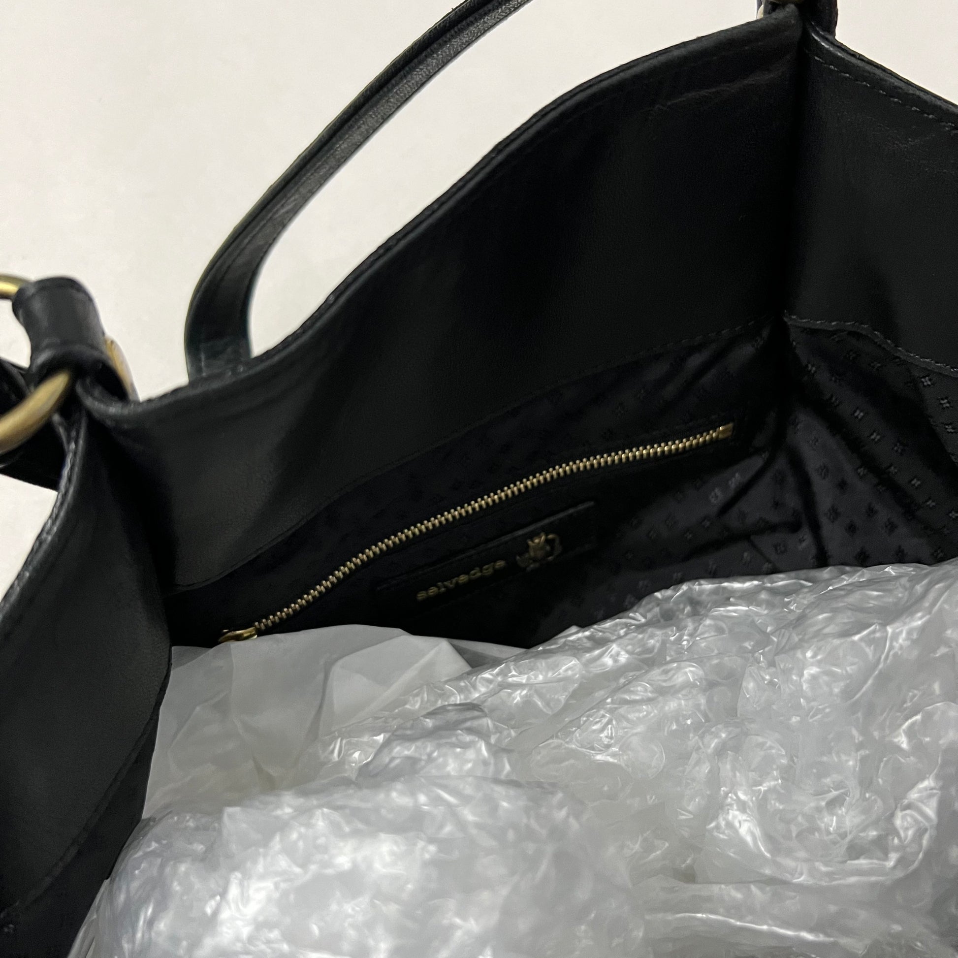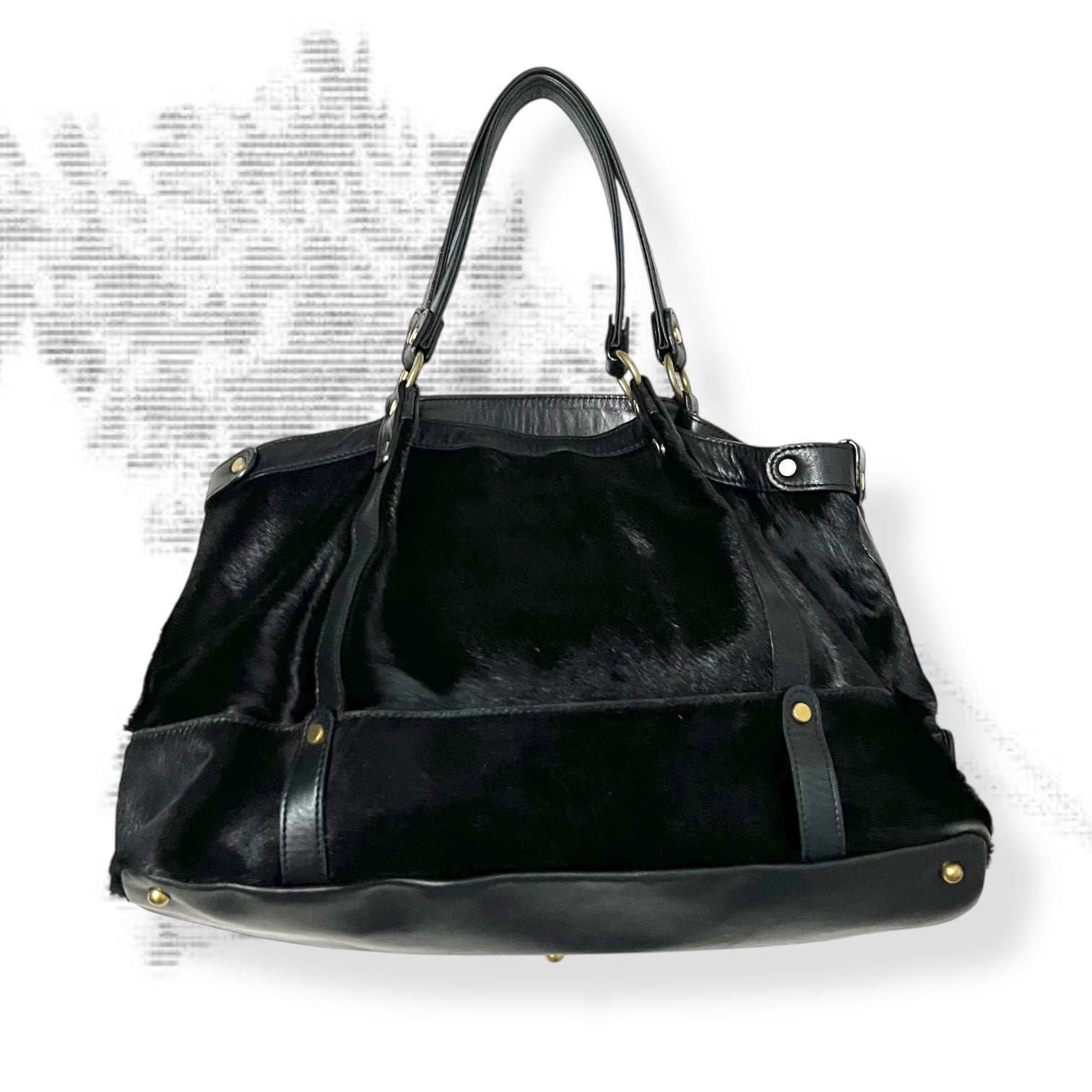 vintage selvedge black ponyhair leather buckle large tote bag
