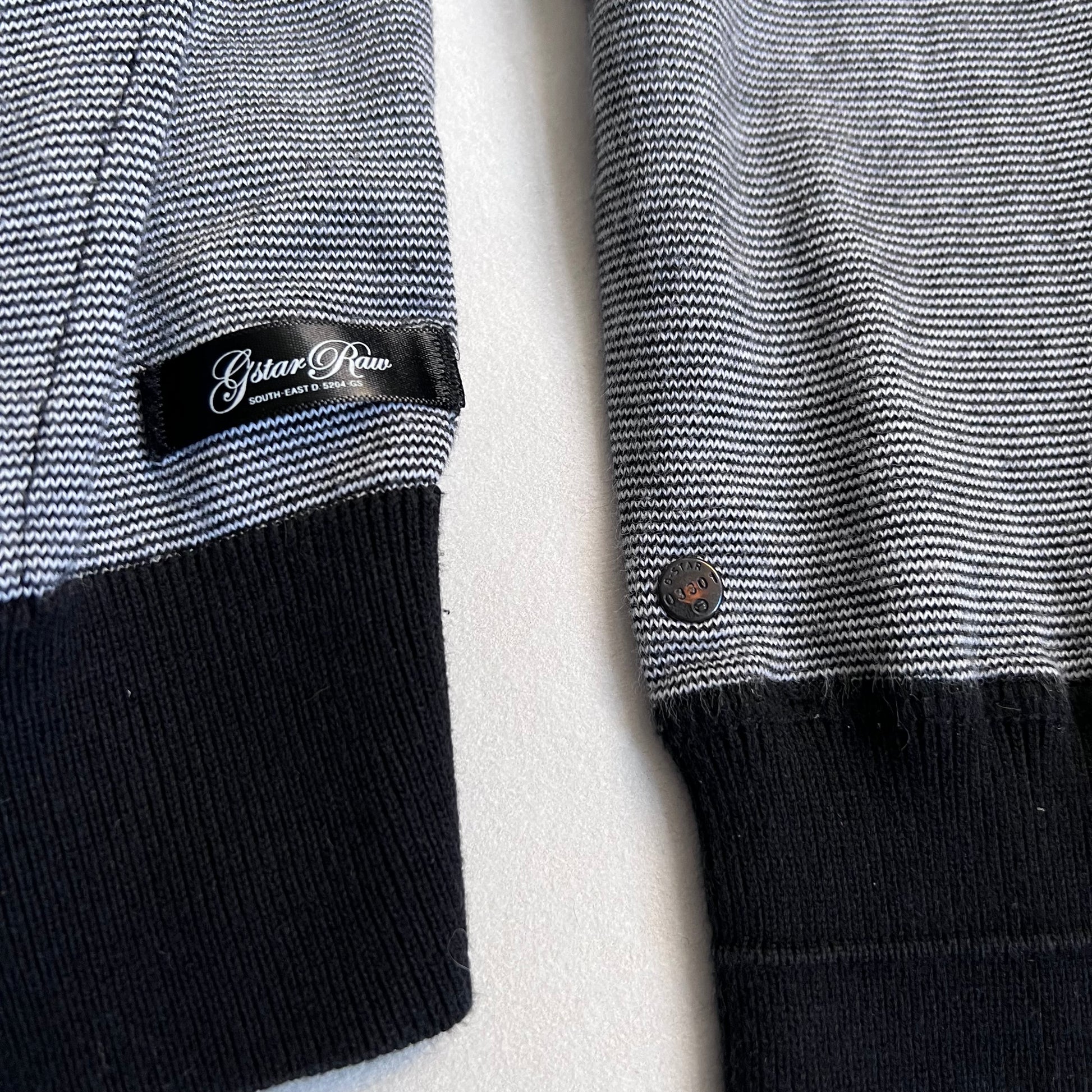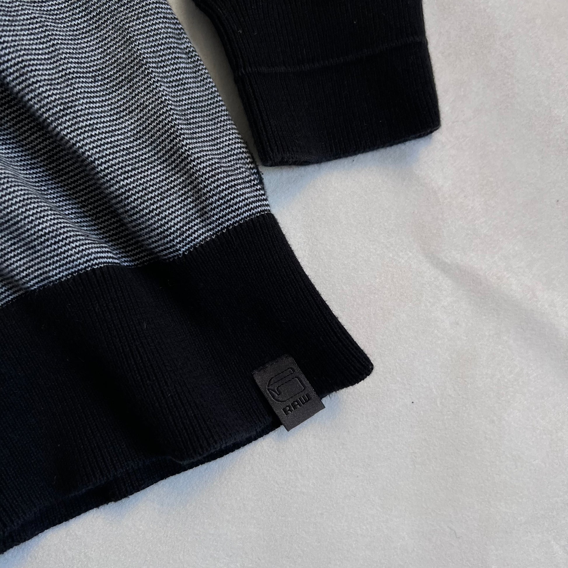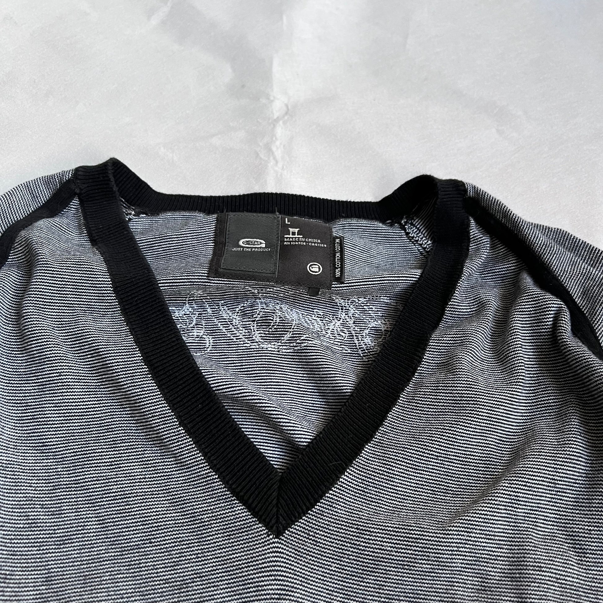 black grey striped g-star striped v neck long sleeve embroidery graphic sweater
