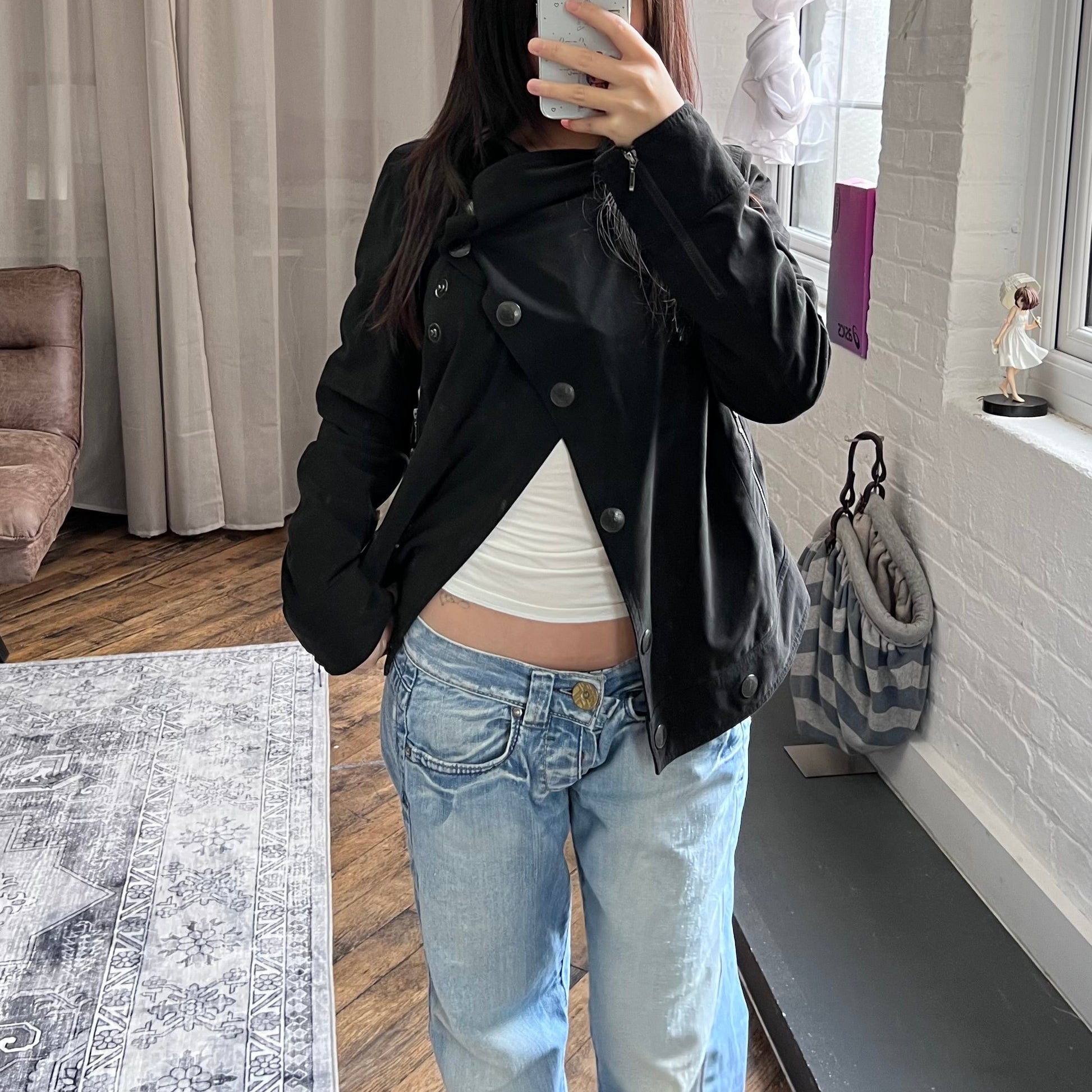 cop copine asymmetric black ruched button corpcore utility draped collar jacket