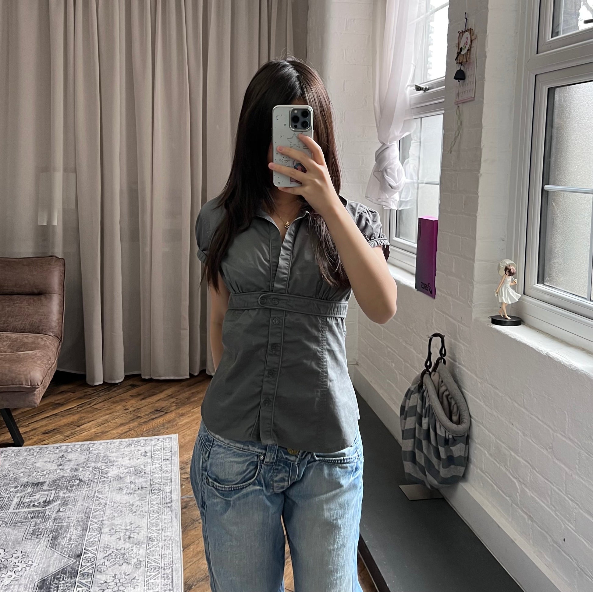dark grey tally weiji corpcore preppy puff sleeve dual button blouson shirt