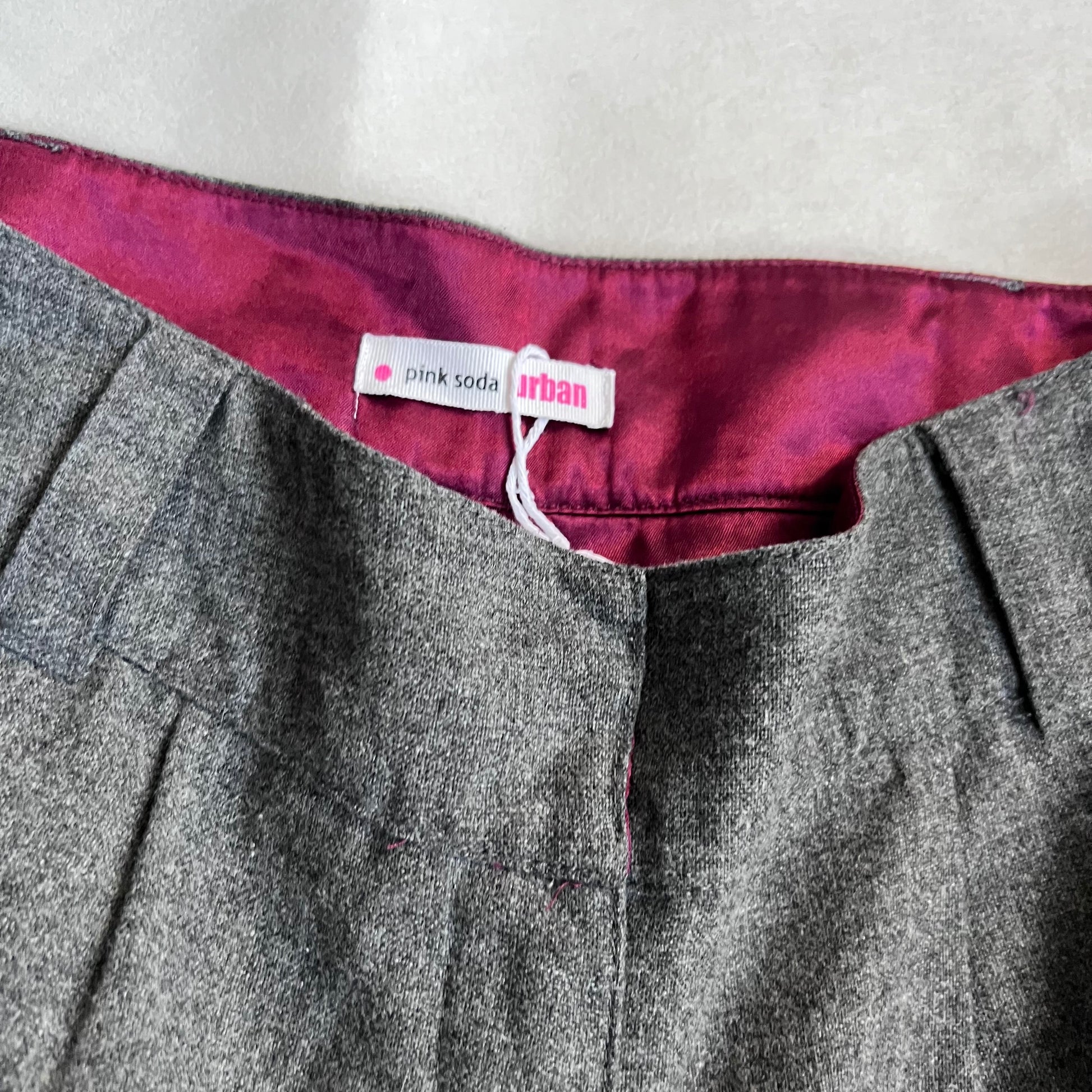 grey pink soda 80% wool blend hem button mini shorts