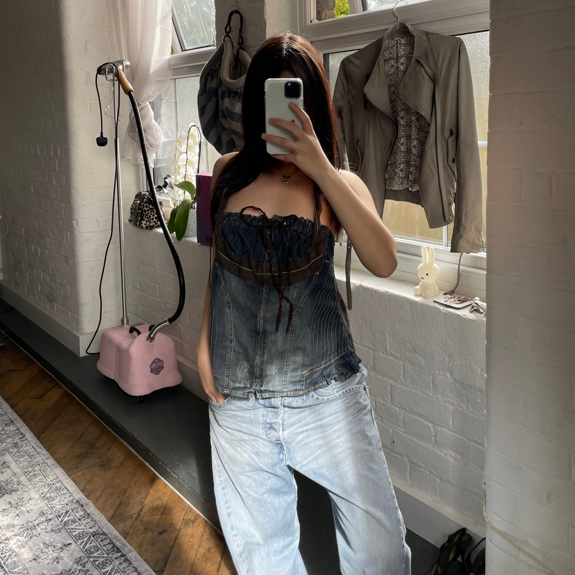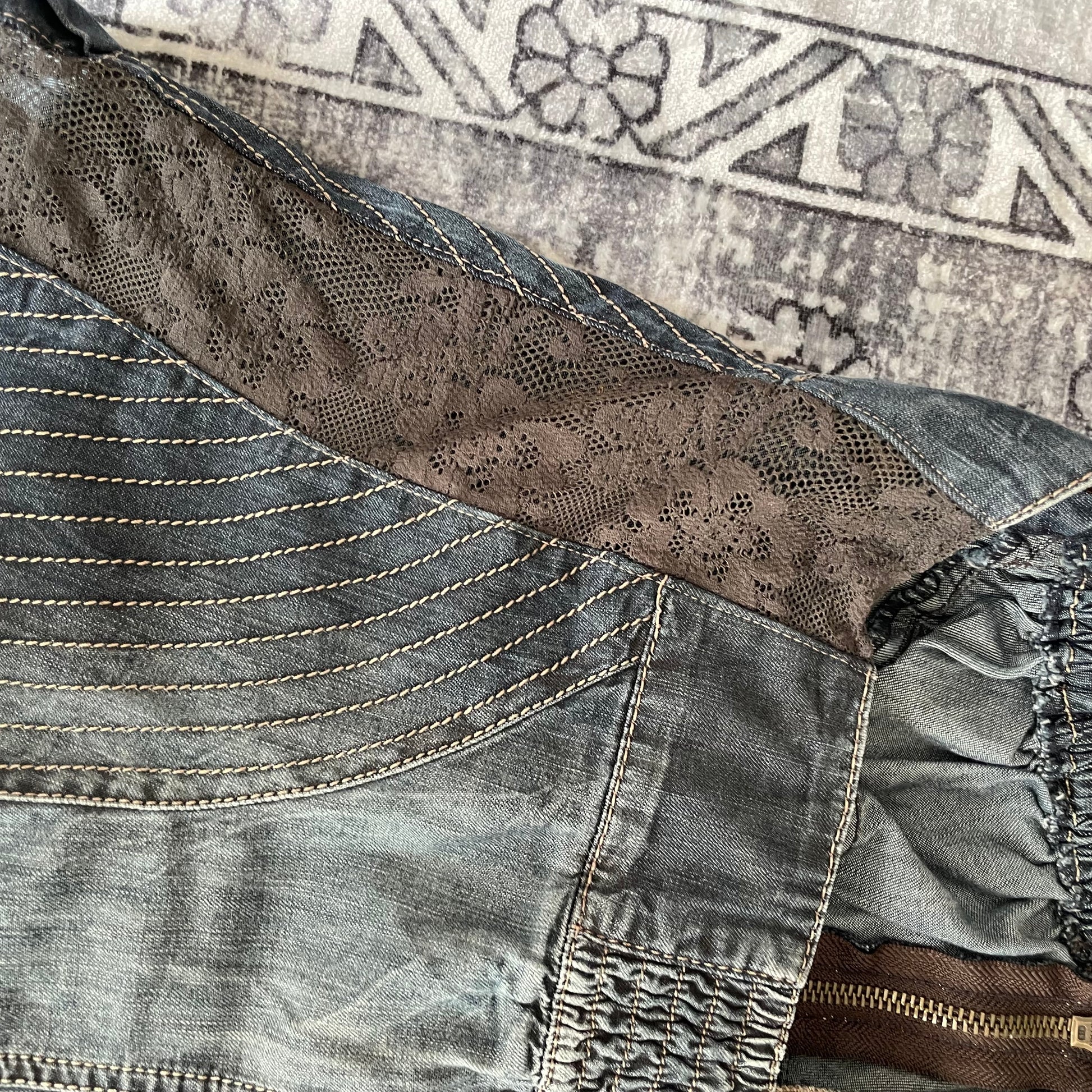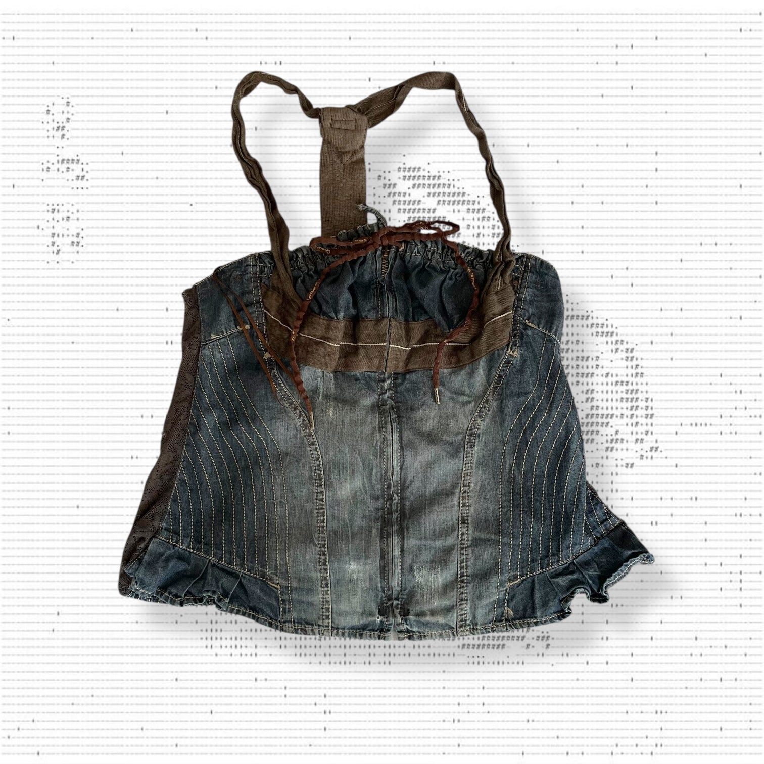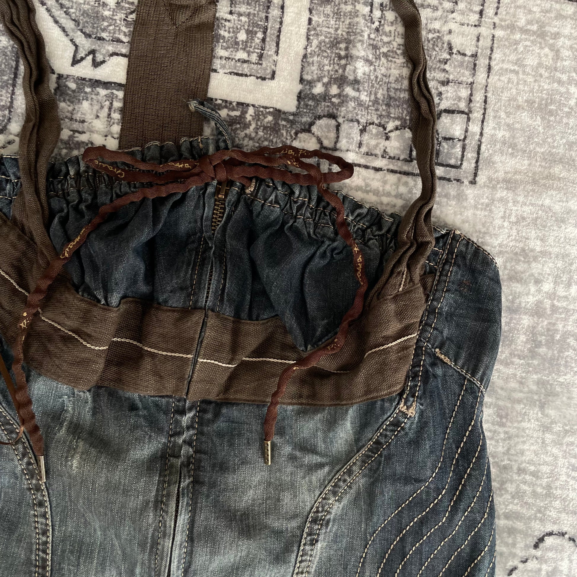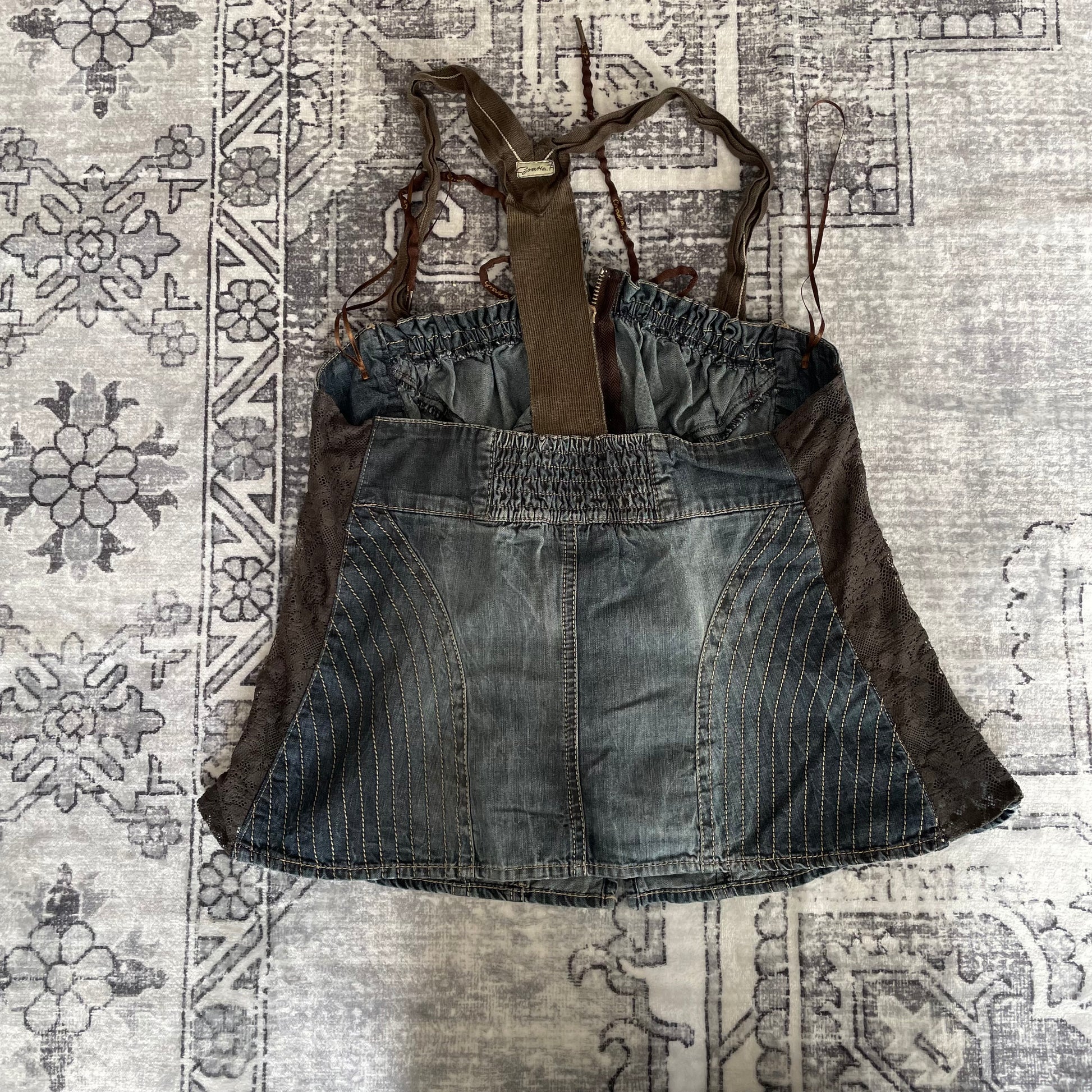 mariagrazia panizzi 西部波西米亚风蓝色牛仔布棕色蕾丝褶皱紧身胸衣紧身胸衣