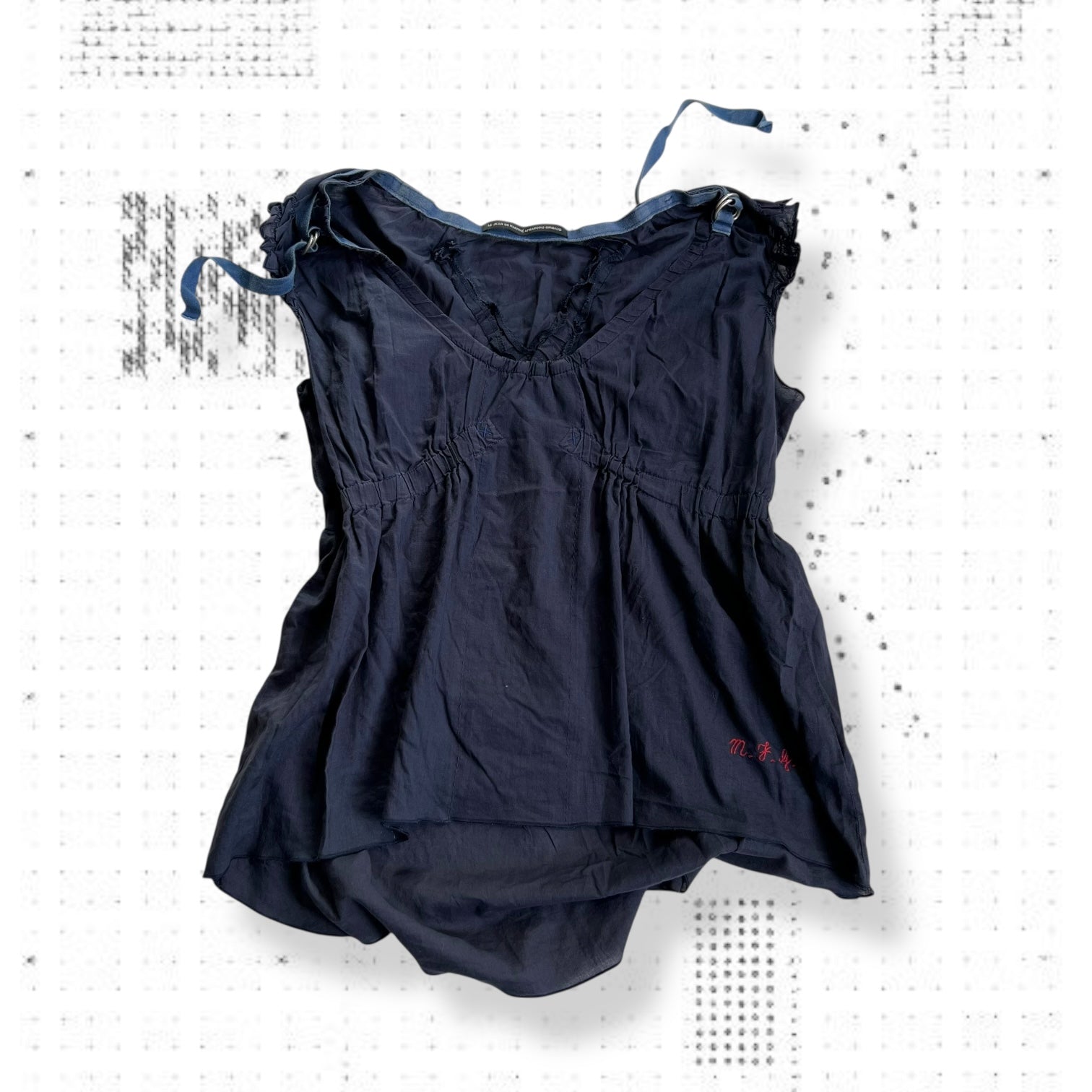marithe francois girbaud navy cap sleeve utility babydoll tunic blouse