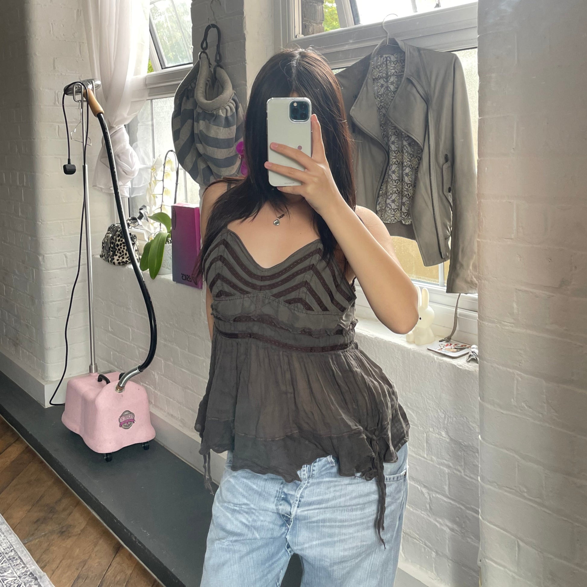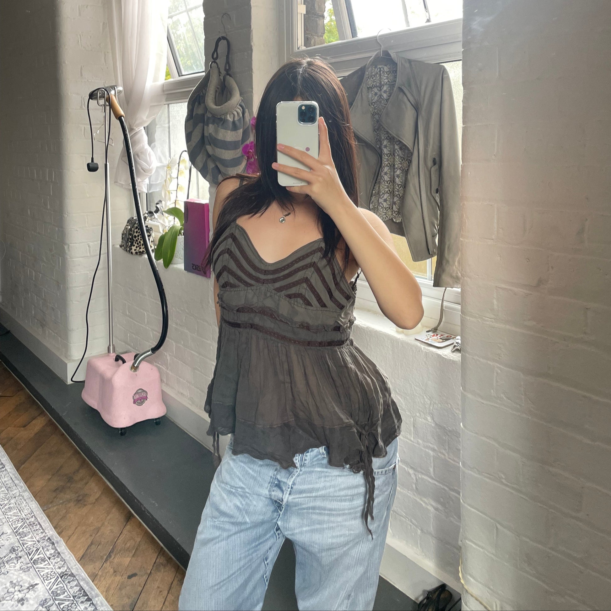 麦克星球棕色仙女风薄纱下摆娃娃衫