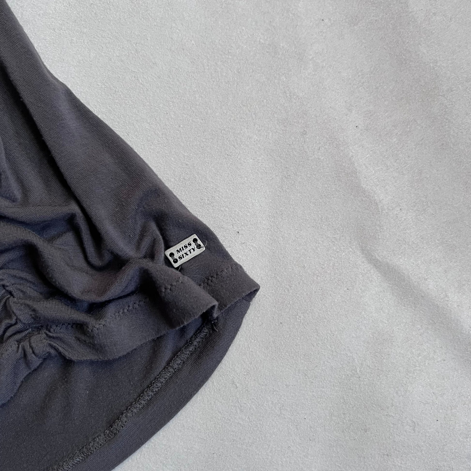 miss sixty grey purple puff sleeve ruched lace up bust fitted blouse shirt