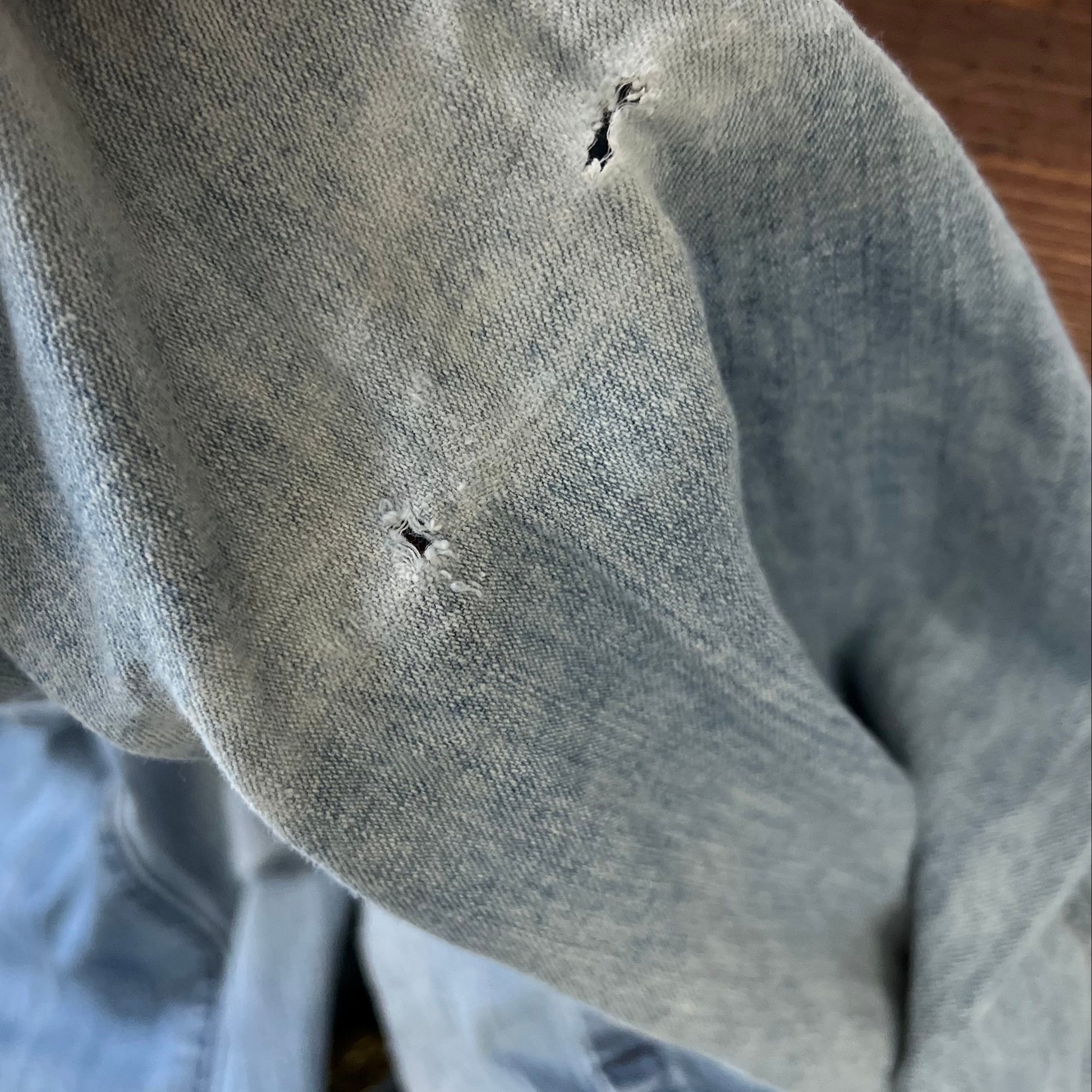 fair condition: 6.5/10 two rips back of leg shown in last photo |